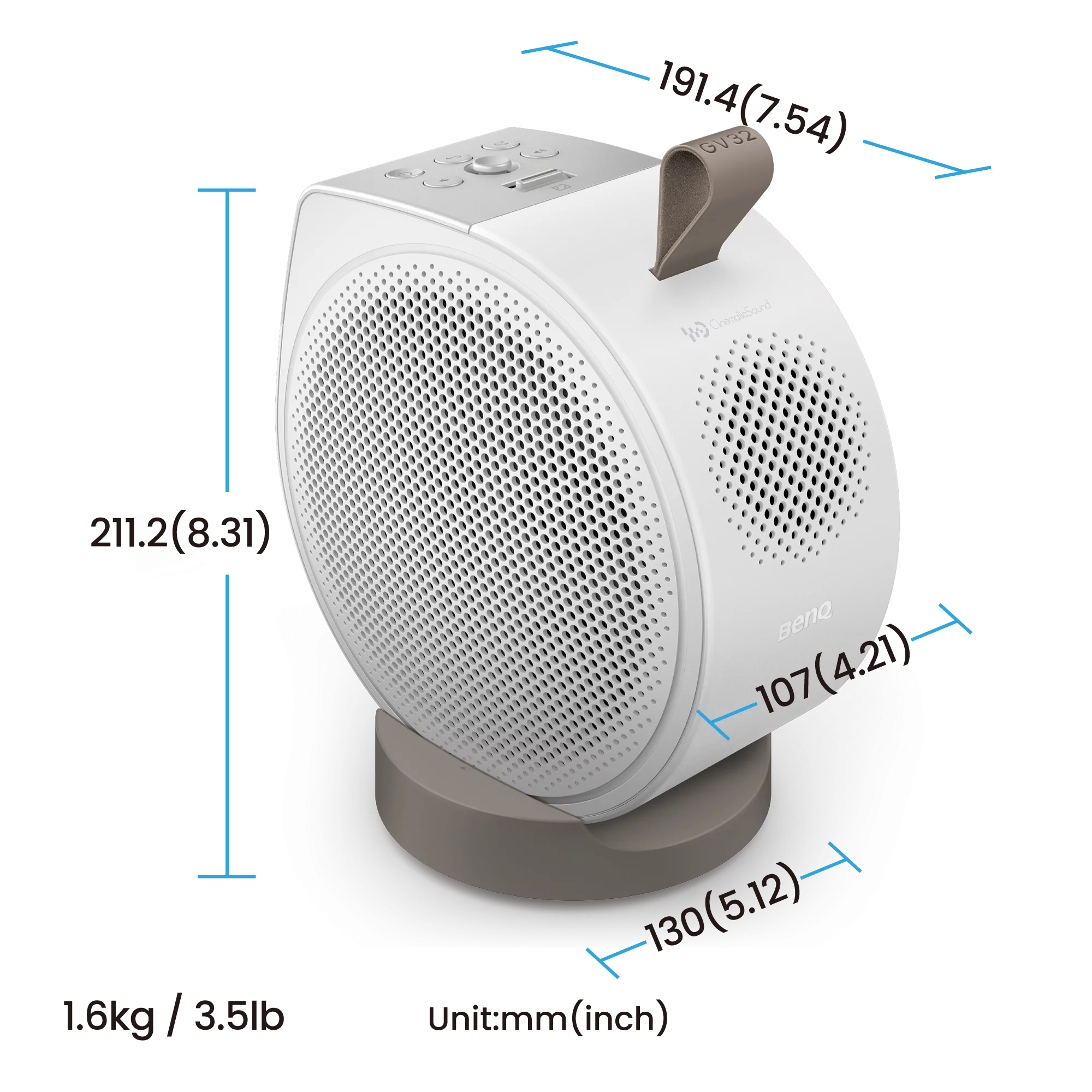 Kantel de verstelbare basis van de GV32 om vanaf het nachtkastje te projecteren—je geniet altijd van de beste kijkhoek, zonder instabiliteit of een rommelig bed.