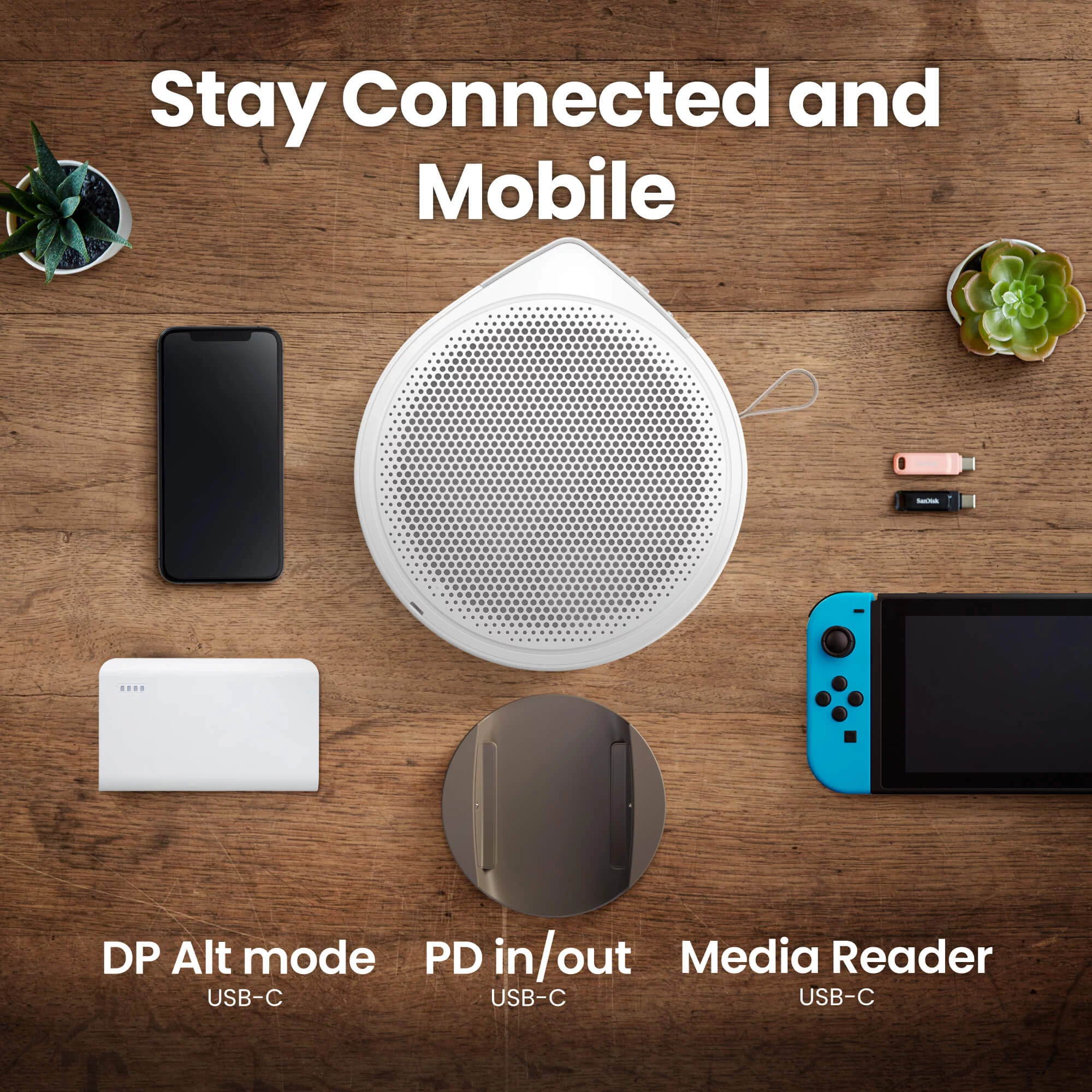 De USB-C poort van de GV32 biedt compatibiliteit met veel verschillende apparaten en stroombronnen.