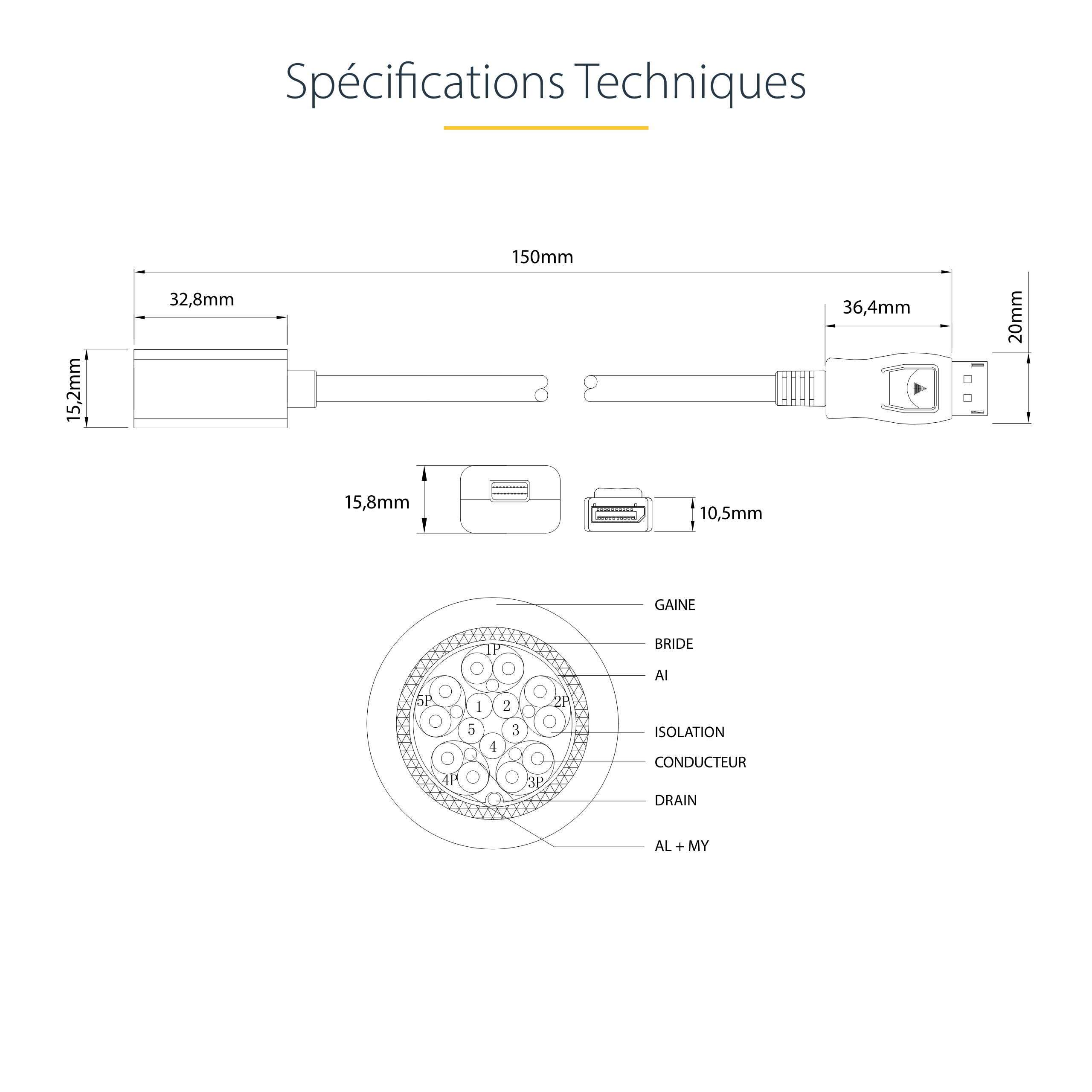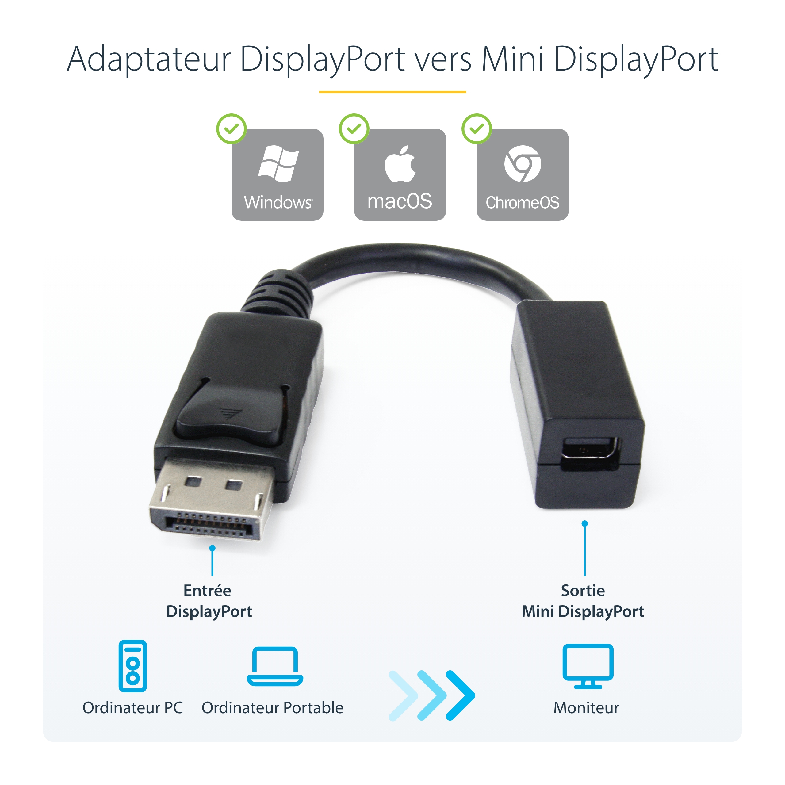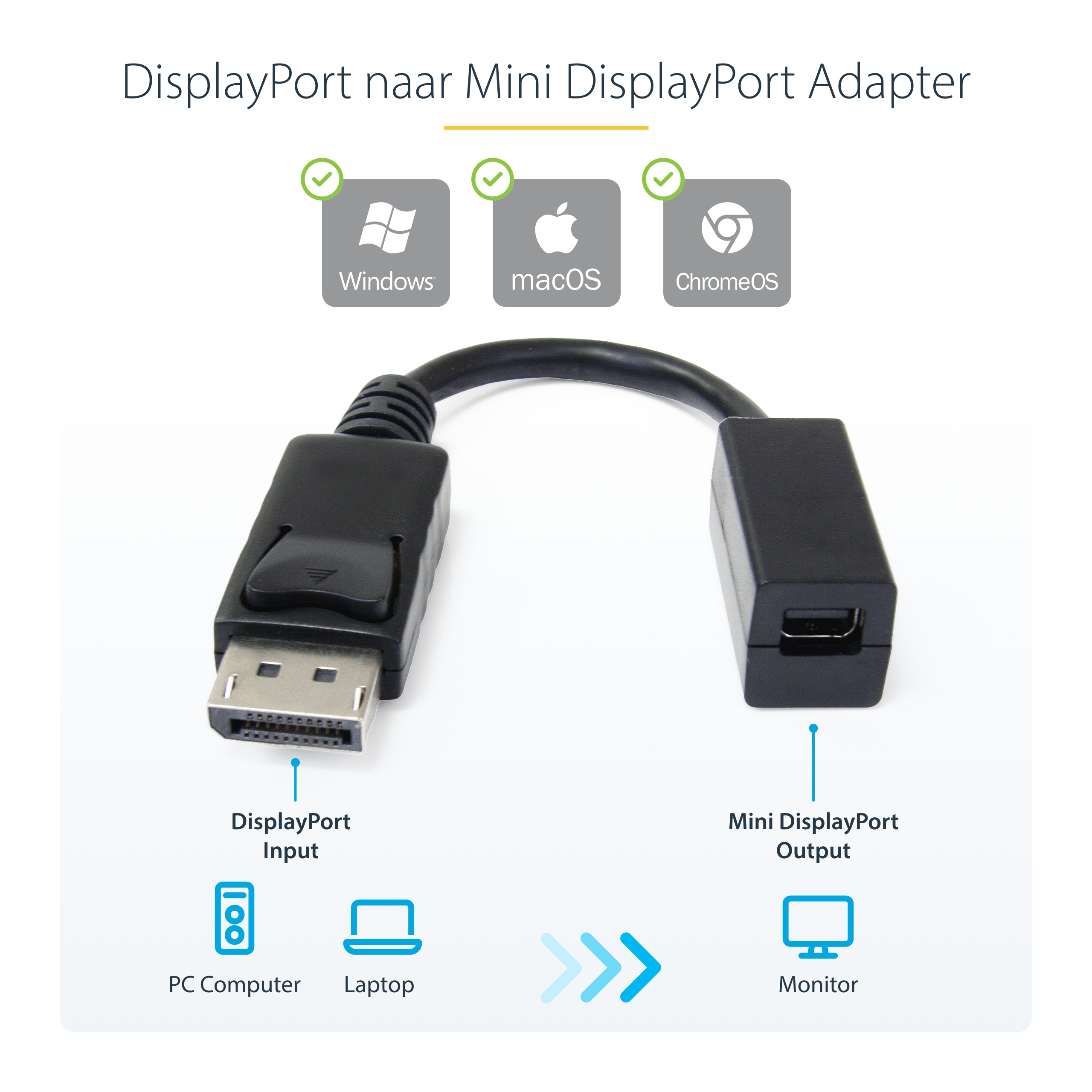 StarTech.com 15cm DisplayPort naar Mini DisplayPort Kabel - 4K x 2K UHD Video - DisplayPort Male naar Mini DisplayPort Female Adapter Kabel - DP Computer naar mDP 1.2 Monitor/Scherm, 0,152 m, Mini DisplayPort, DisplayPort, Mannelijk, Vrouwelijk, 3840 x 24