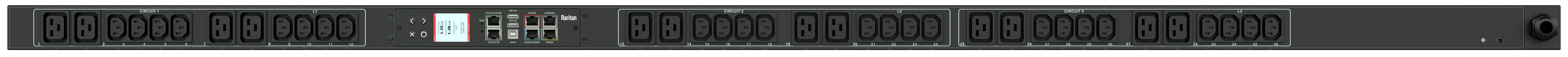Raritan PX3-1732. PDU types: Gemeten, Gecontroleerd, Rackcapaciteit: 0U, Soort: Driefasig. Aantal AC uitgangen: 36 AC-uitgang(en), Stopcontacttypes: C13 stekker, C19 stekker, Input-connectietype: IEC 60309 3P+N+E 6h 16A (4P5W). Snoerlengte: 3 m. Monitoring: Vocht, Temperatuur. Nominale input voltage: 400 V, Stroom (max.): 16 A, AC-ingangsfrequentie: 50 - 60 Hz