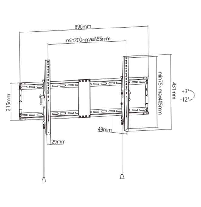 Geschikt voor de meeste TV's met een schermdiameter van 43'' t/m 90''