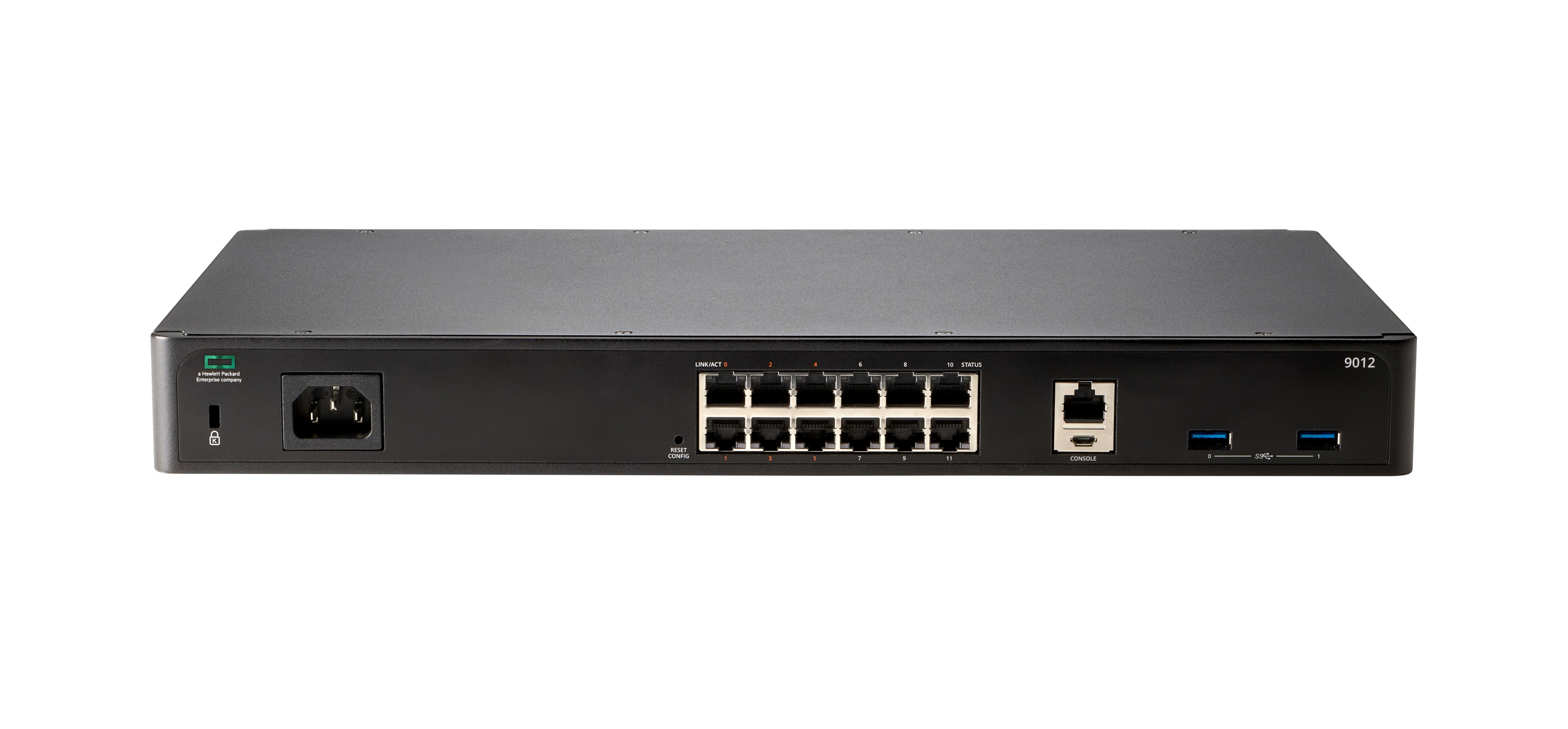 HPE Aruba Networking 9012 (RW) TAA 12xGbE 6xPoE+ Branch 2K Clients - 32 APs Gateway, Zwart, 1U, Rekmontage, LAN, Status, Systeem, WAN, 100,1000 Mbit/s, 6000 Mbit/s