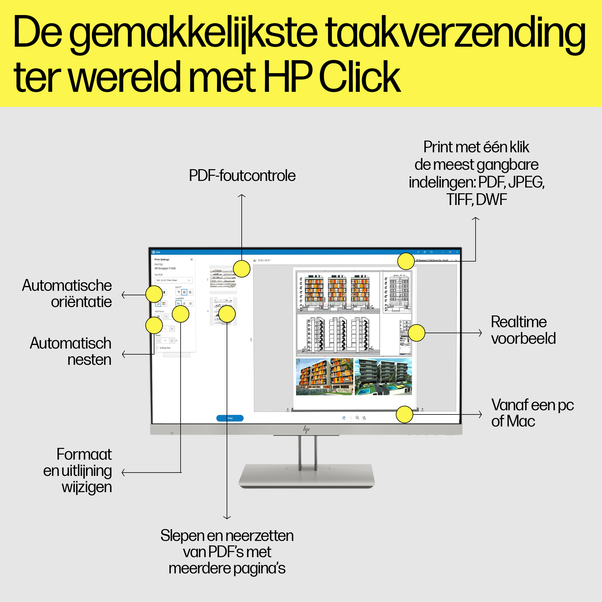 HP Designjet T1600 36-inch PostScript-printer, Thermische inkjet, 2400 x 1200 DPI, PostScript 3, PDF 1.7, HP-GL/2, TIFF, JPEG, HP-RTL, CALS G4, Cyaan, Foto zwart, Mat Zwart, Magenta, Geel, Grijs, 2400 x 1200 DPI, 1 universal printhead