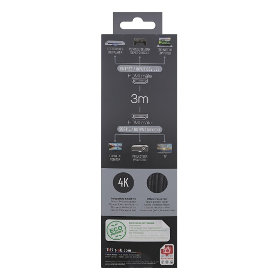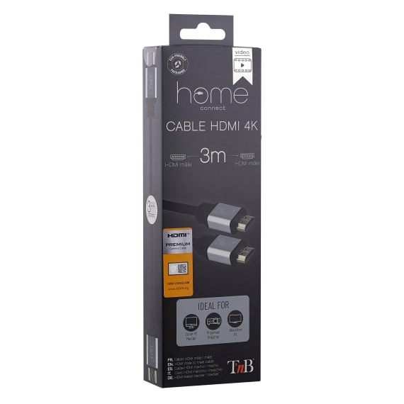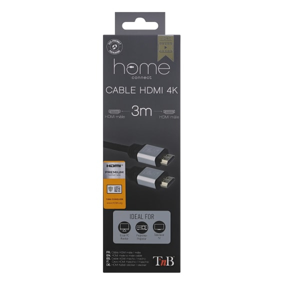 T'nB HDMI4K3. Snoerlengte: 3 m, Aansluiting 1: HDMI Type A (Standaard), Aansluiting 1 type: Mannelijk, Aansluiting 2: HDMI Type A (Standaard), Aansluiting 2 type: Mannelijk, Contact geleider materiaal: Goud, Kleur van het product: Zwart