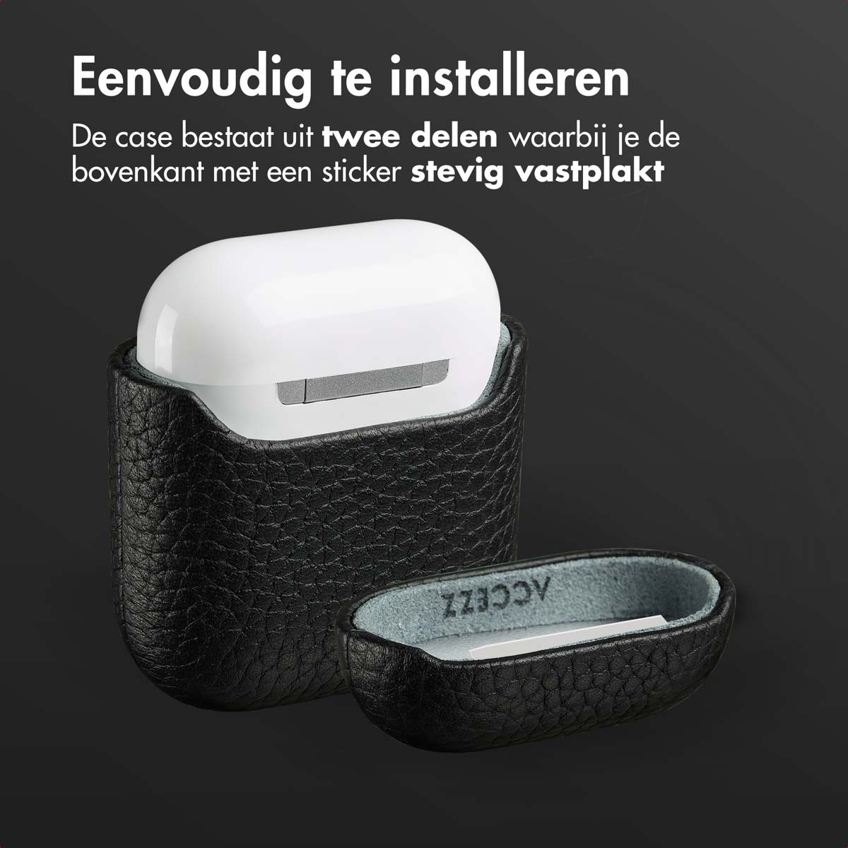 Accezz Echt lederen AirPods case, Oplaadstation, Echt leer, Zwart