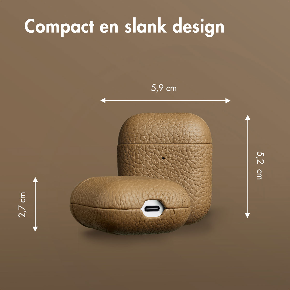 Zet deze tegen de USB-poort van je AirPods en duw in tegengestelde richting tegen de case. Compact ontwerp Het Echt Lederen hoesje is speciaal ontworpen voor jouw Apple AirPods en sluit daarom naadloos aan op de oplaadcase. Hierbij is rekening gehouden met de juiste uitsparingen, zoals de USB-C poort en het indicatielampje.
