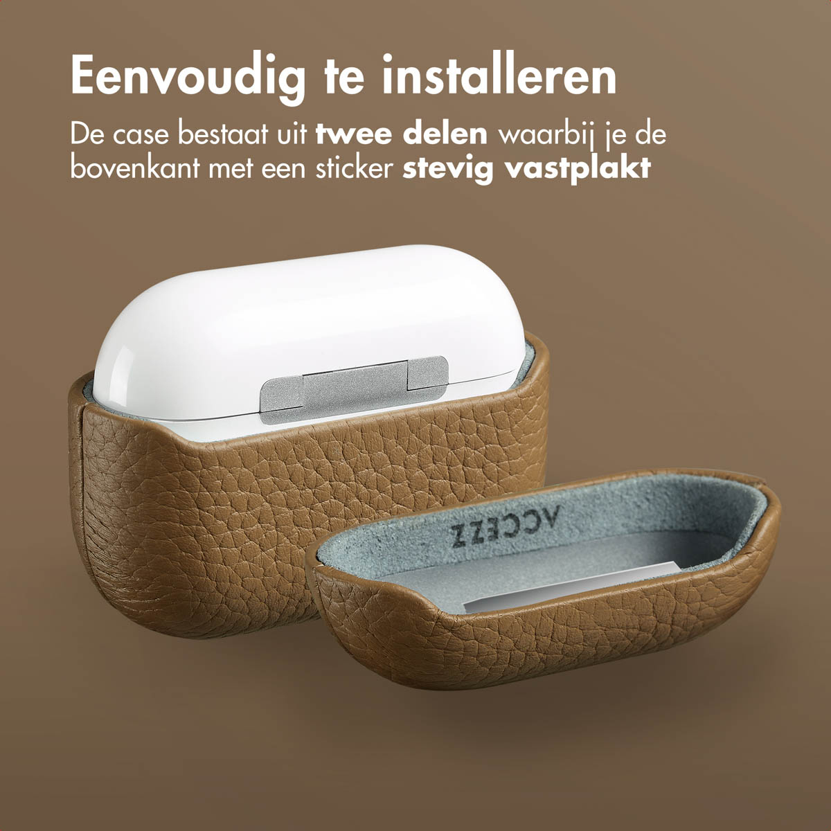 Accezz Echt lederen AirPods case, Oplaadstation, Echt leer, Bruin