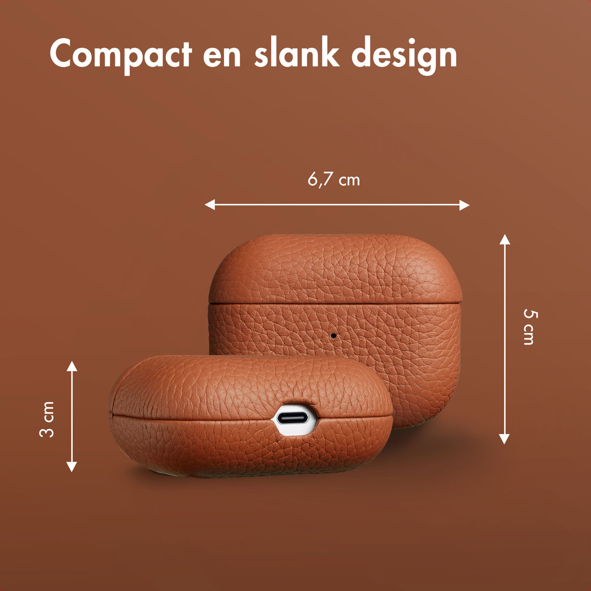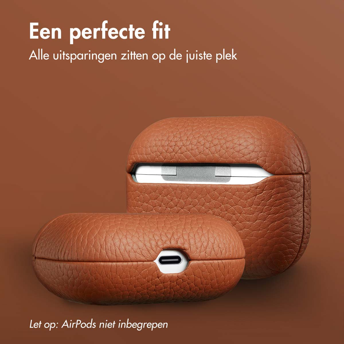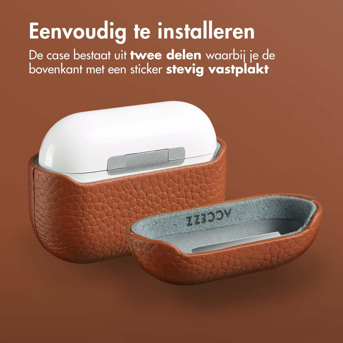 Accezz Echt lederen AirPods case, Oplaadstation, Echt leer, Cognackleur