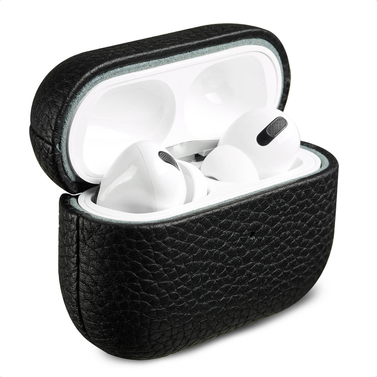 Accezz Echt lederen AirPods case, Oplaadstation, Echt leer, Zwart