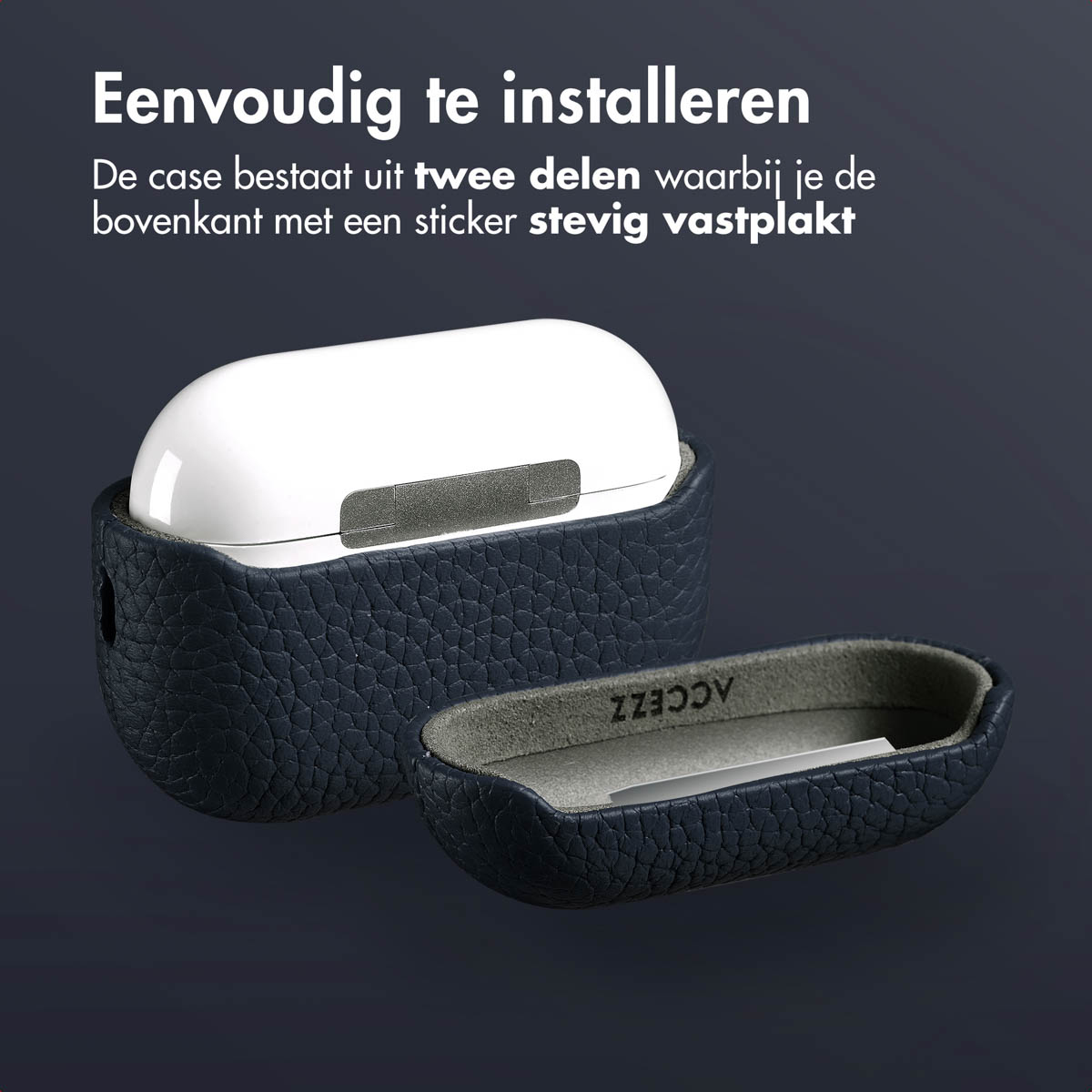 Accezz Echt lederen AirPods case, Oplaadstation, Echt leer, Donkerblauw