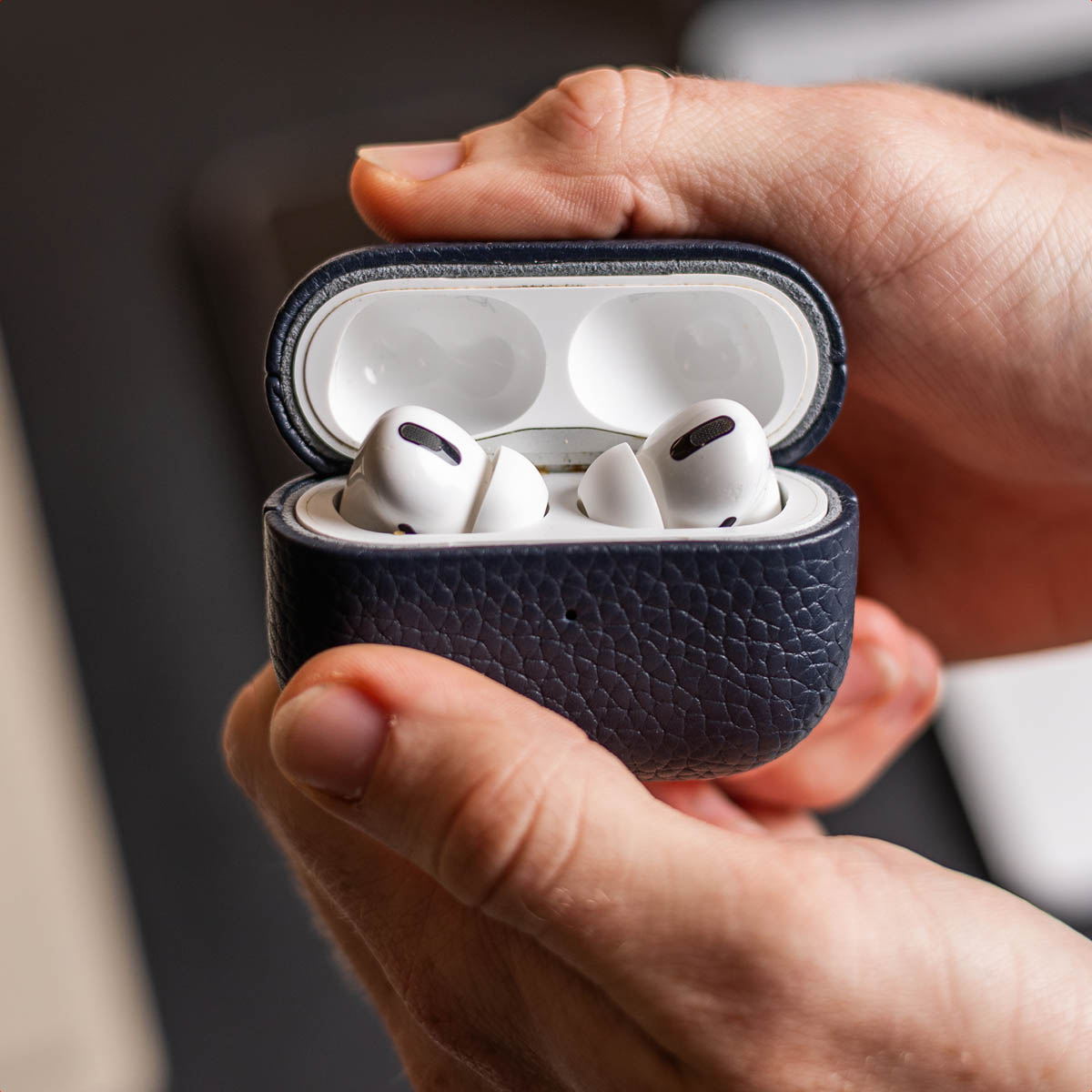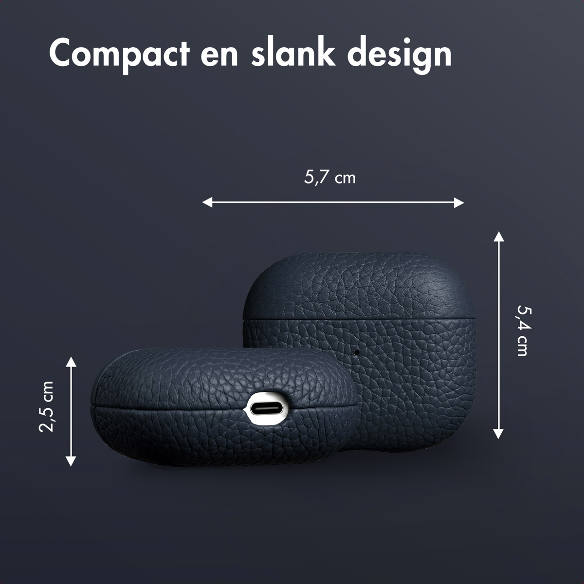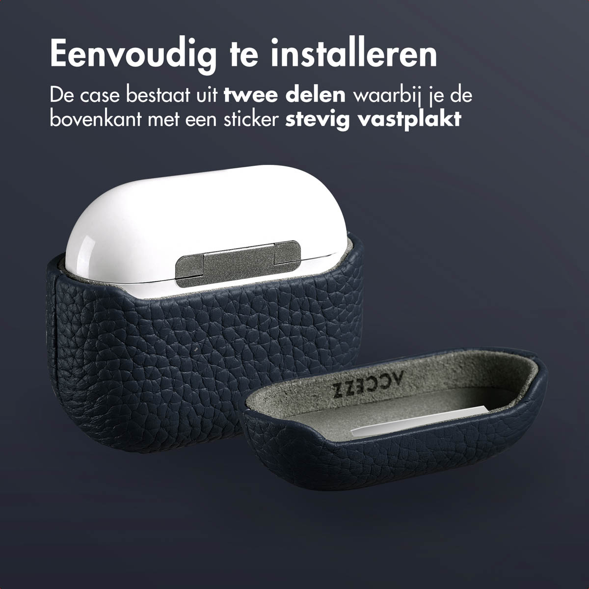 Accezz Echt lederen AirPods case, Oplaadstation, Echt leer, Donkerblauw