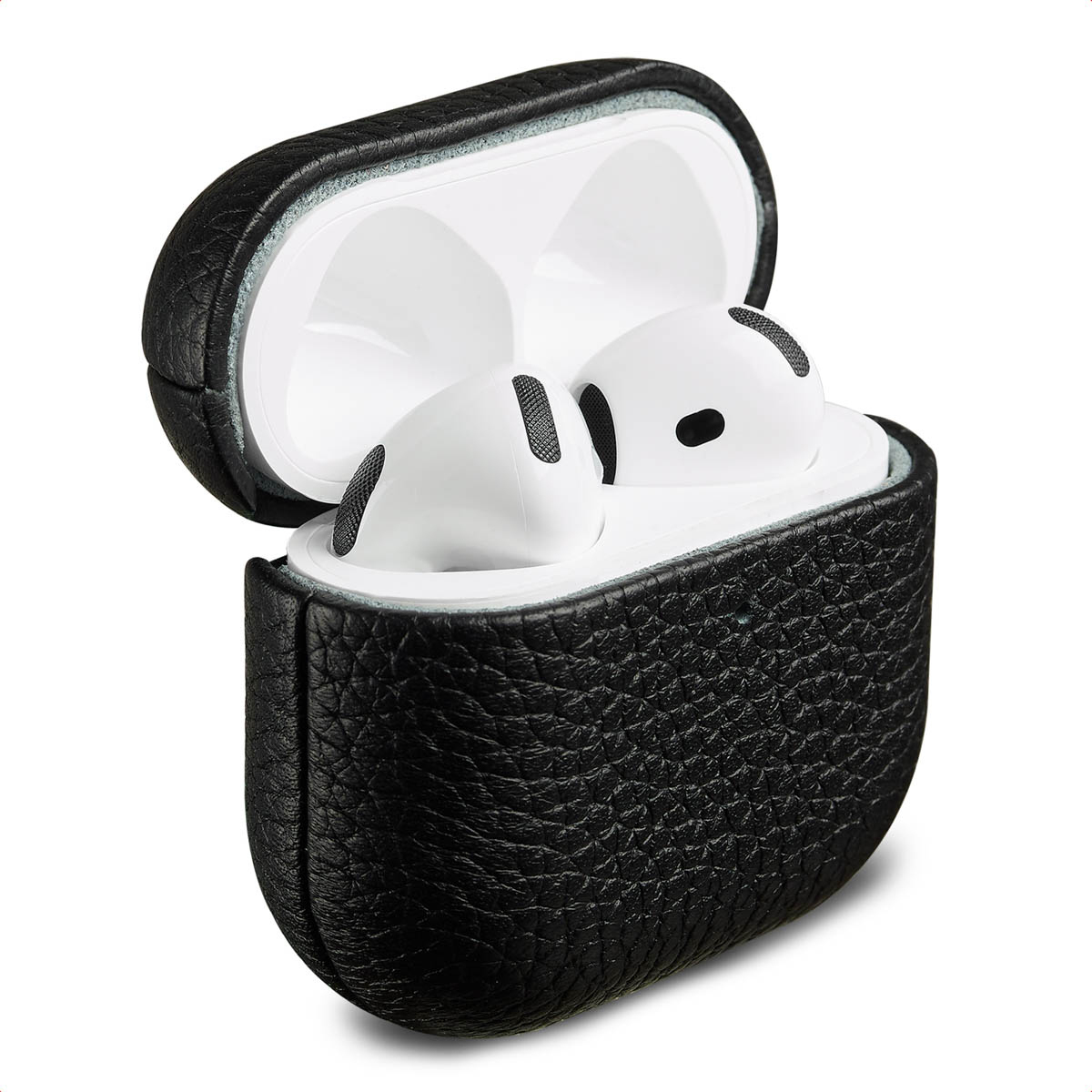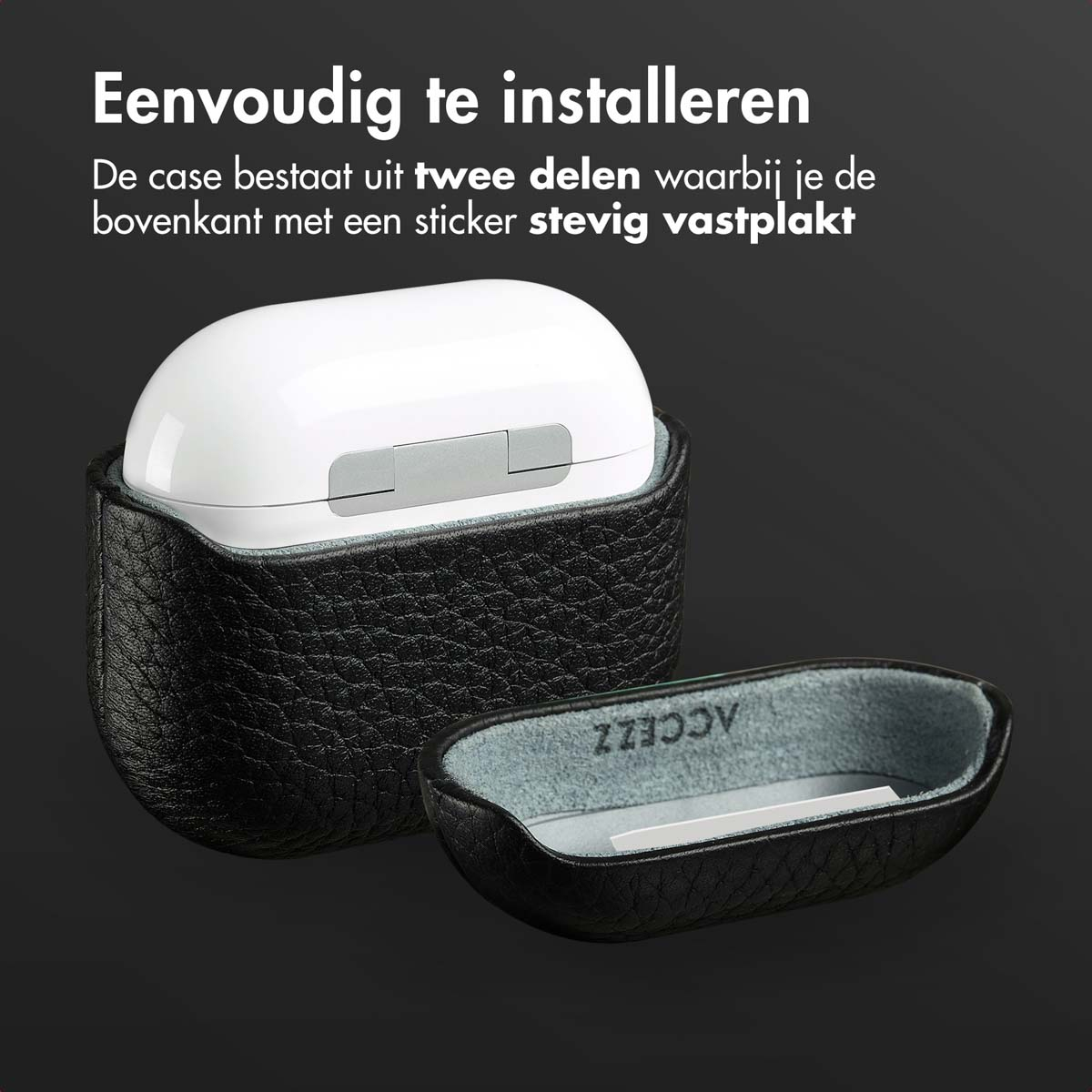 Accezz Echt lederen AirPods case, Oplaadstation, Echt leer, Zwart