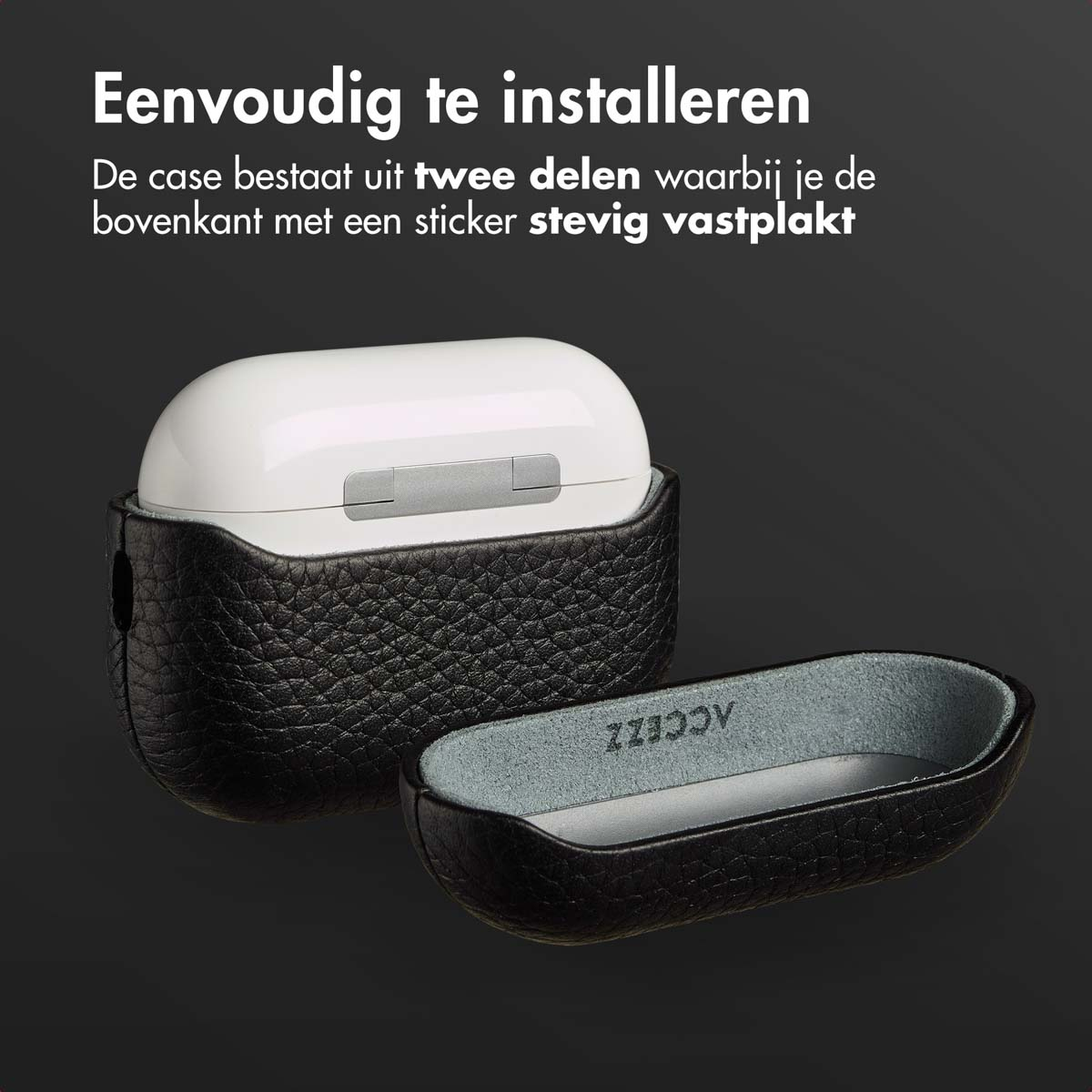 Accezz Echt lederen AirPods case, Opbergtas, Echt leer, Zwart