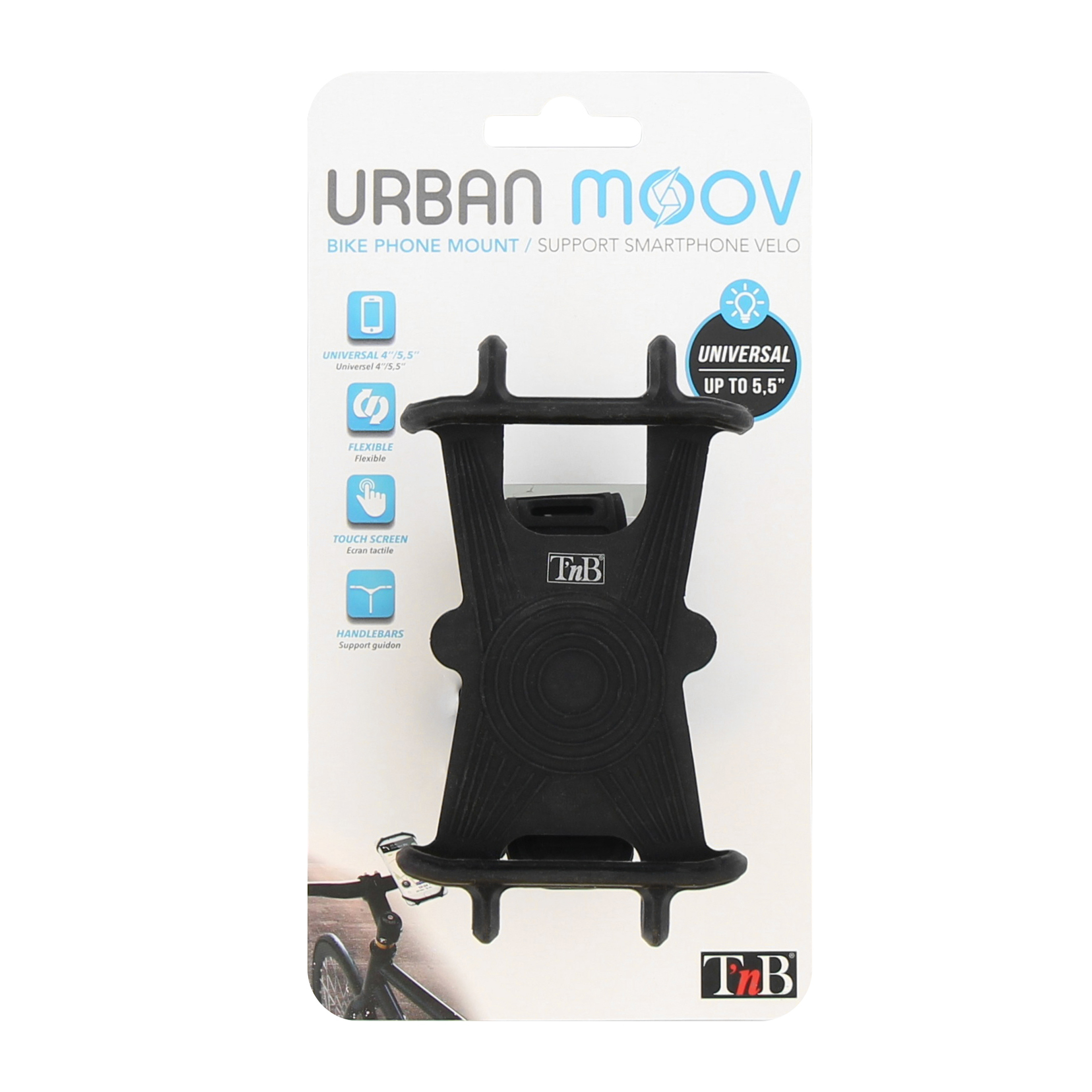T'nB UMBIKE1. Type mobiele apparatuur: Mobiele telefoon/Smartphone, Soort: Passieve houder, Correct gebruik: Fiets, Kleur van het product: Zwart