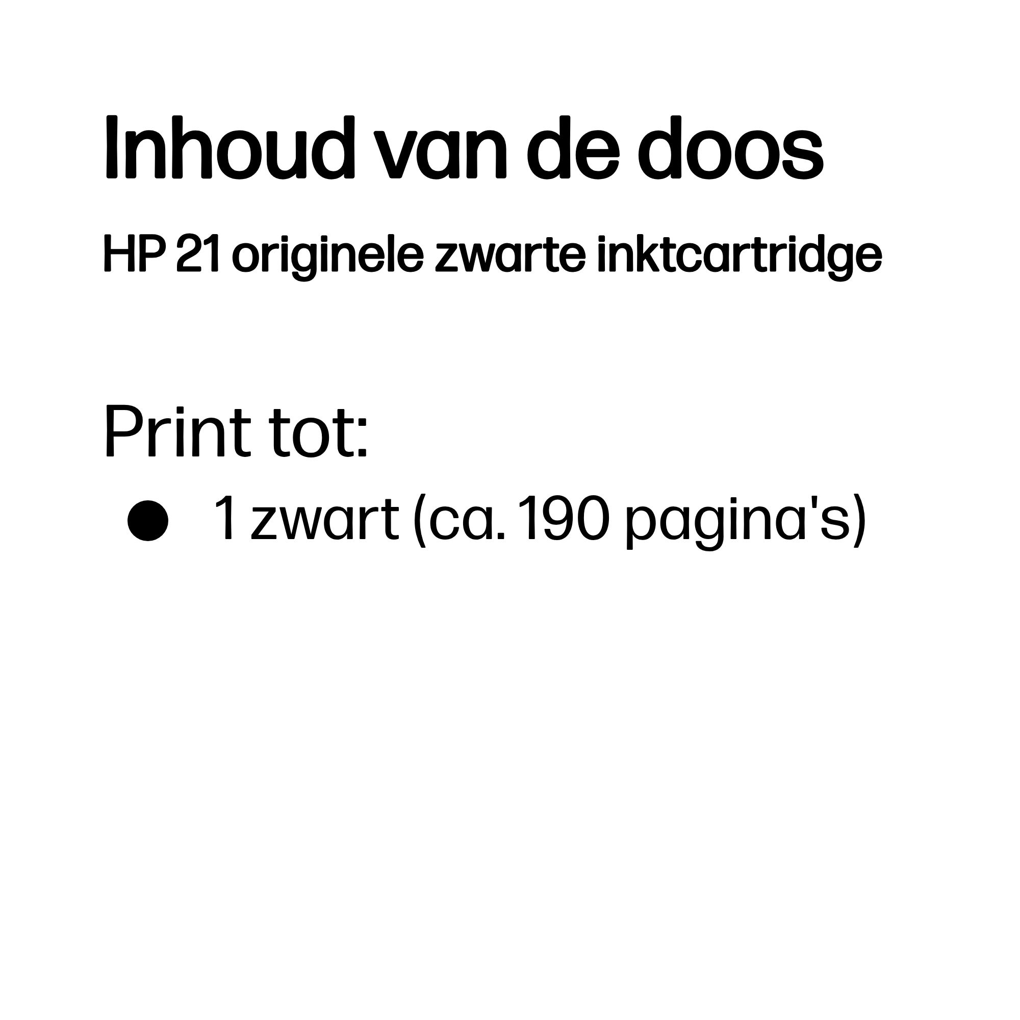 HP 21 originele zwarte inktcartridge, Zwart, 1 stuk(s), 190 pagina's