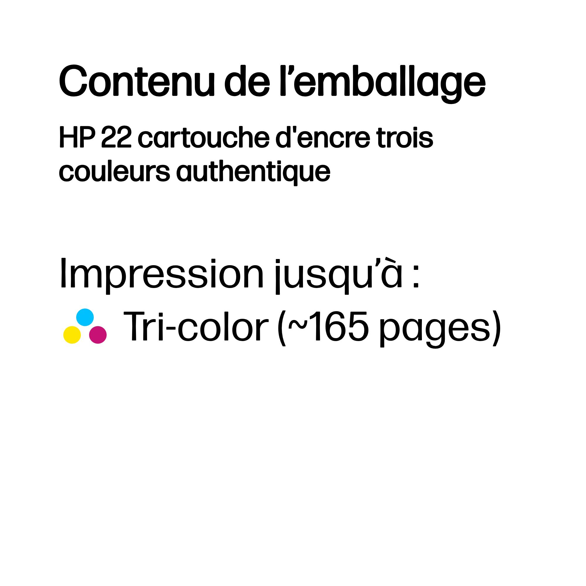 HP 22 originele drie-kleuren inktcartridge, Cyaan, Magenta, Geel, 1 stuk(s), 165 pagina's