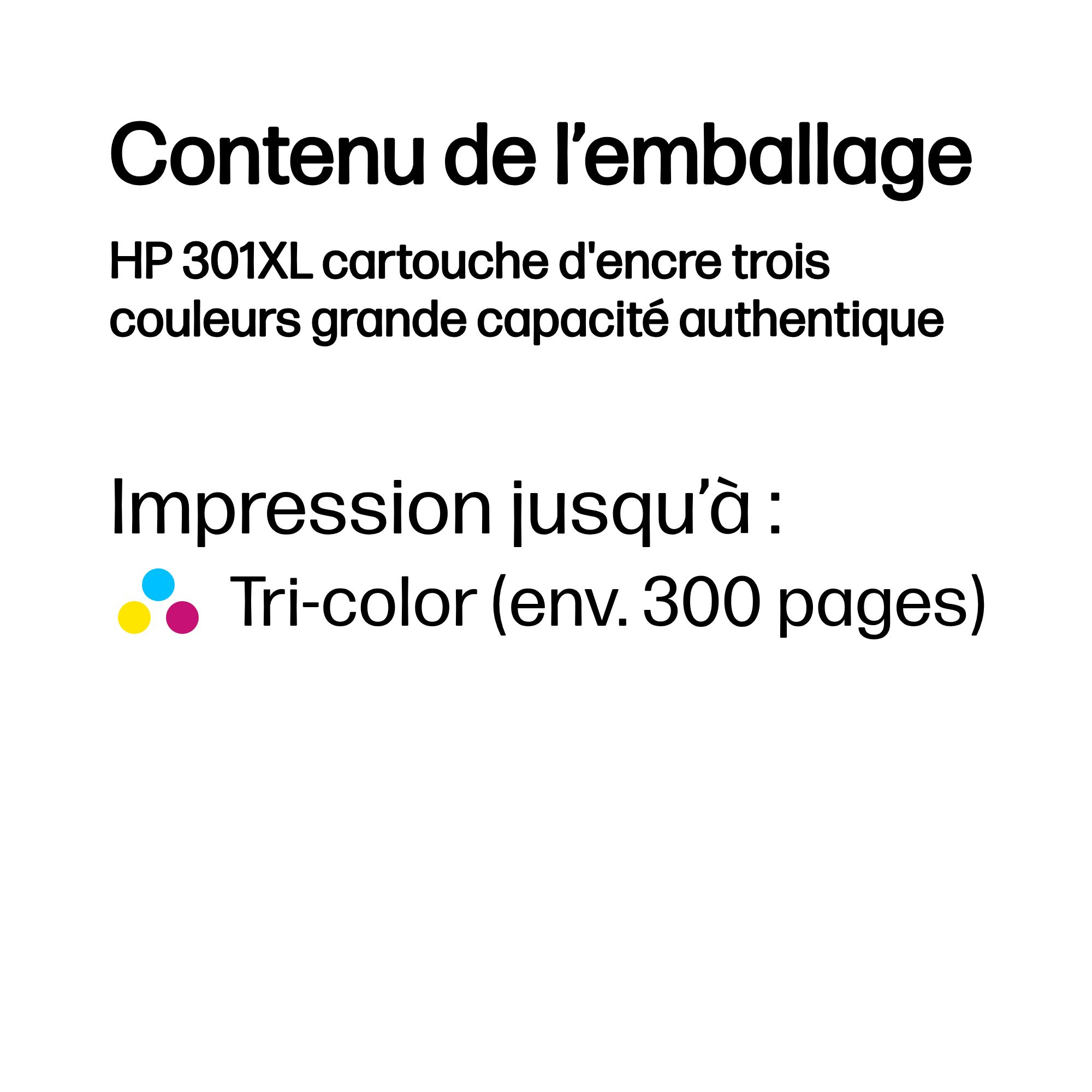 HP 301XL originele high-capacity drie-kleuren inktcartridge, Cyaan, Magenta, Geel, 1 stuk(s), 300 pagina's