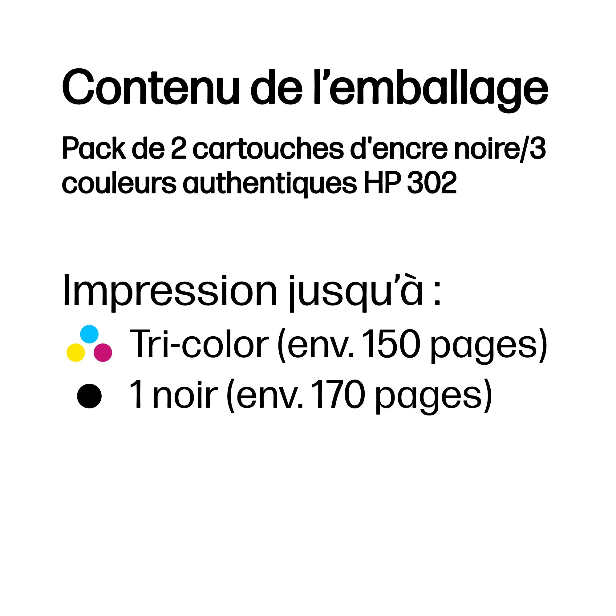 HP 302 originele zwarte/drie-kleuren inktcartridges, 2-pack, Zwart, Cyaan, Magenta, Geel, Inkt op pigmentbasis, 2 stuk(s), 170 pagina's