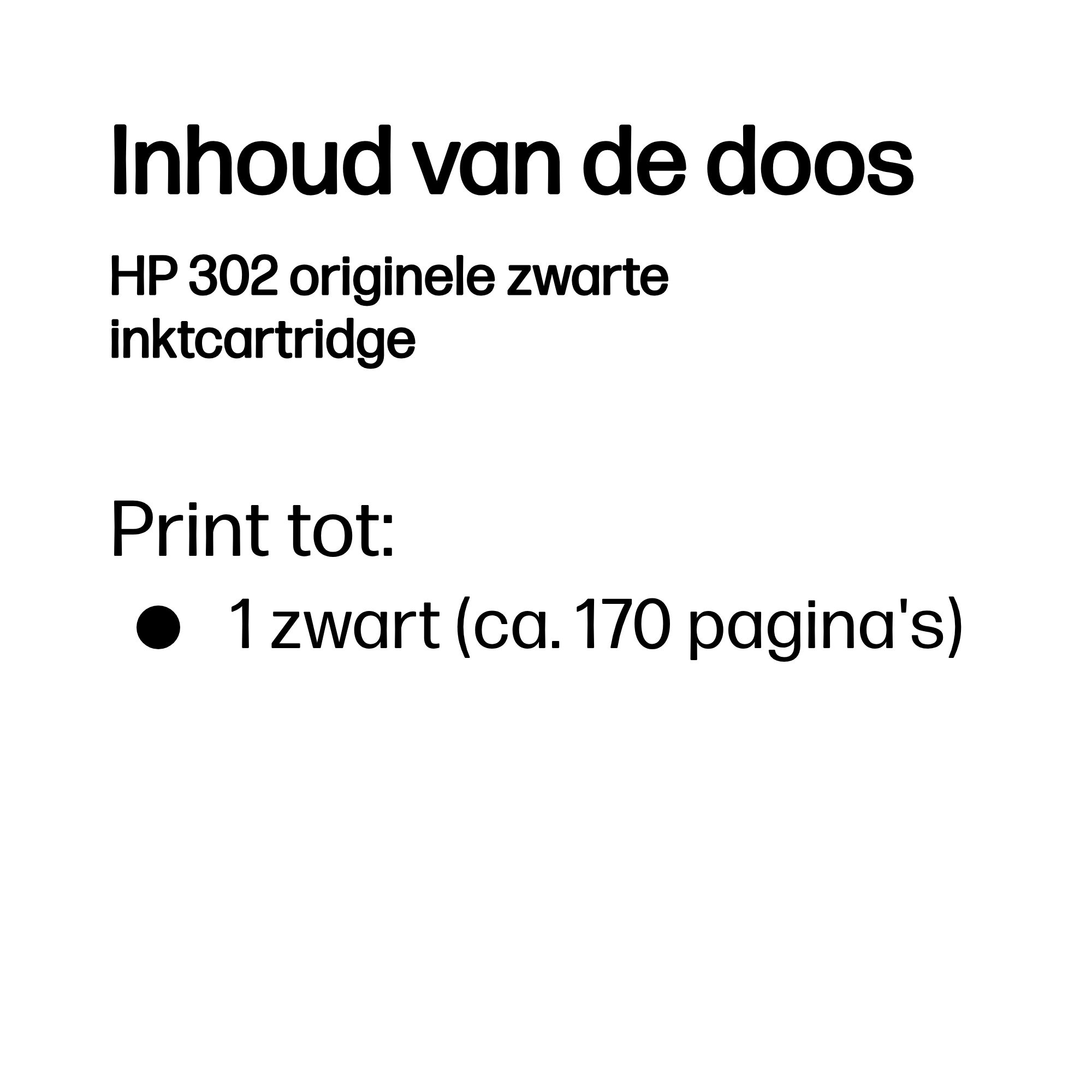 HP 302 originele zwarte inktcartridge, Zwart, 1 stuk(s), 170 pagina's