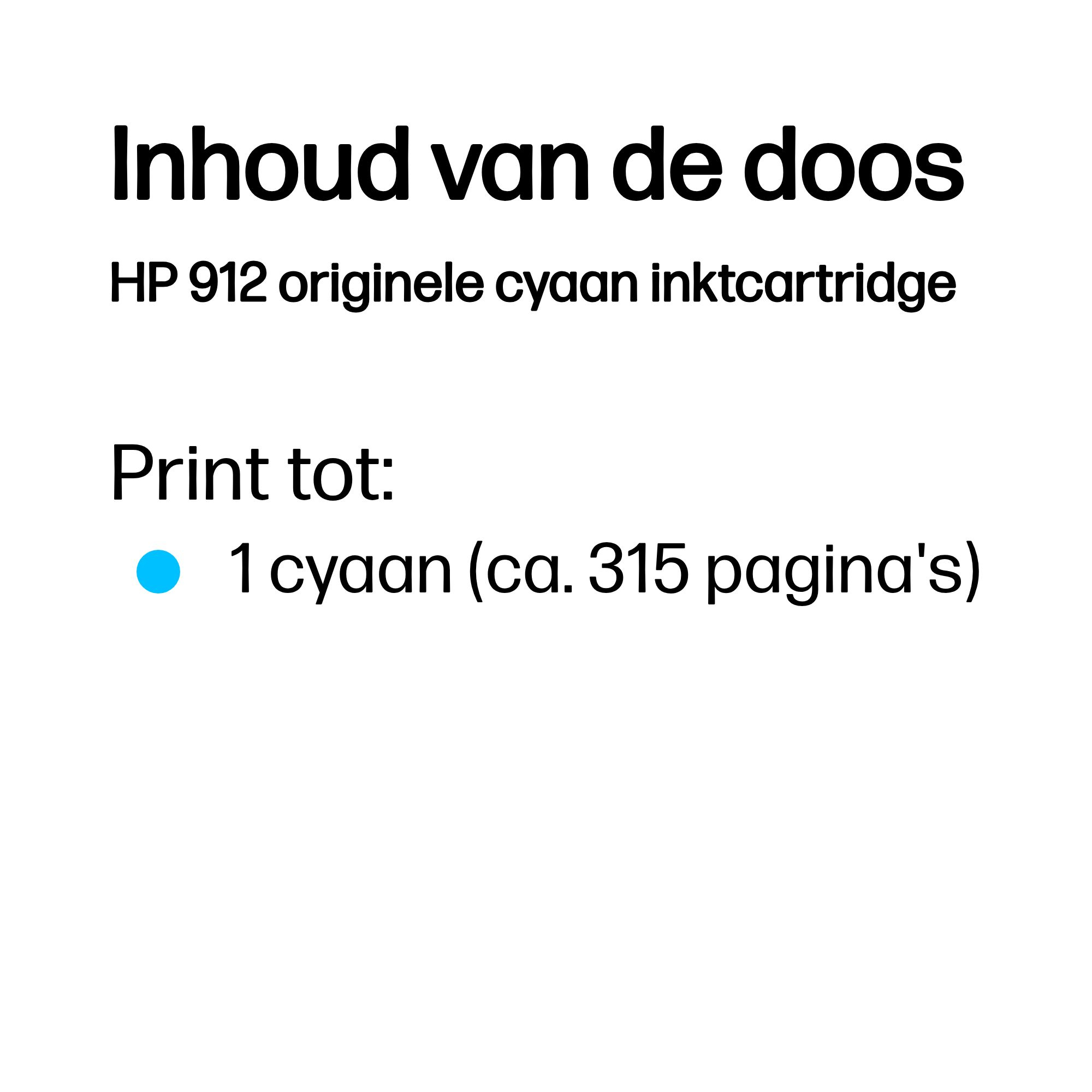 HP 912 originele cyaan inktcartridge, Cyaan, 1 stuk(s), 315 pagina's