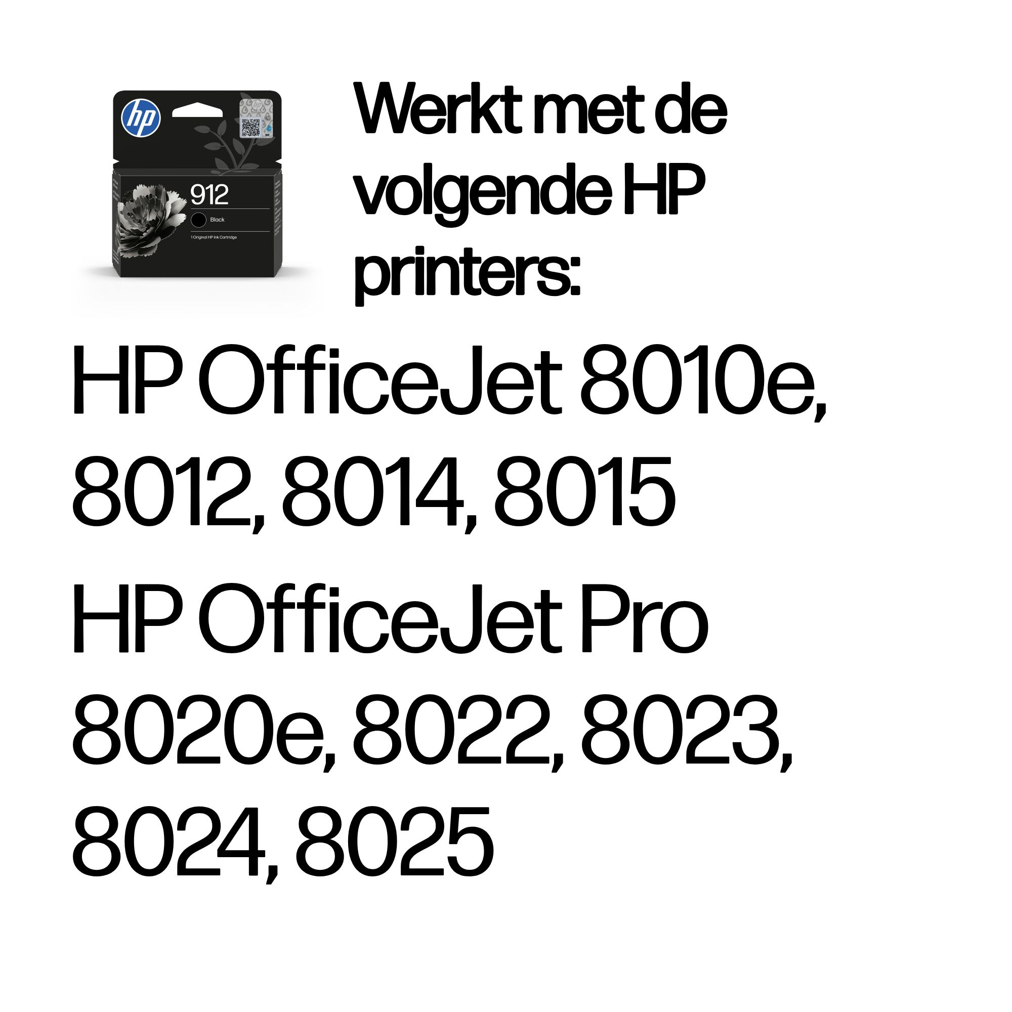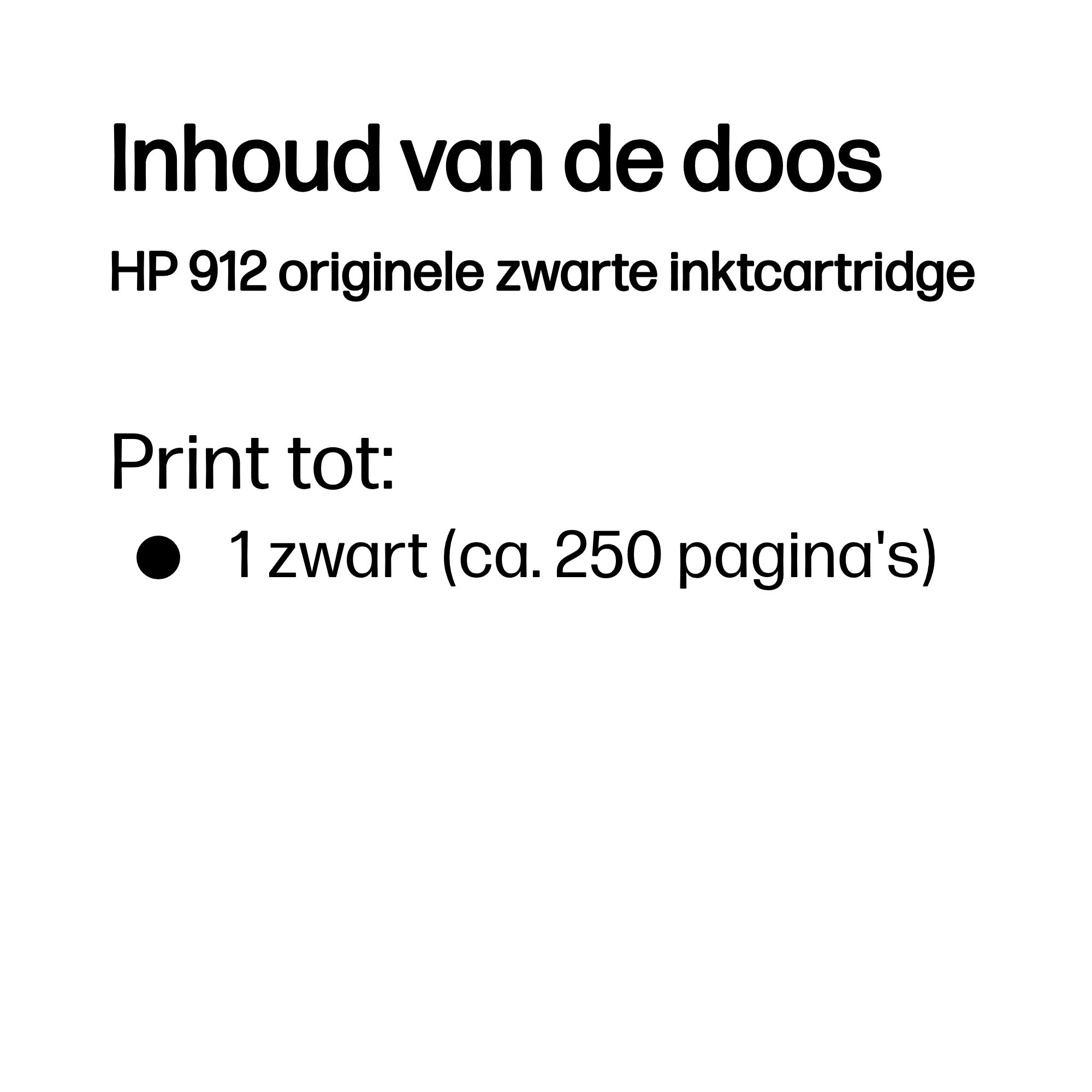 HP 912 originele zwarte inktcartridge, Zwart, 1 stuk(s), 250 pagina's
