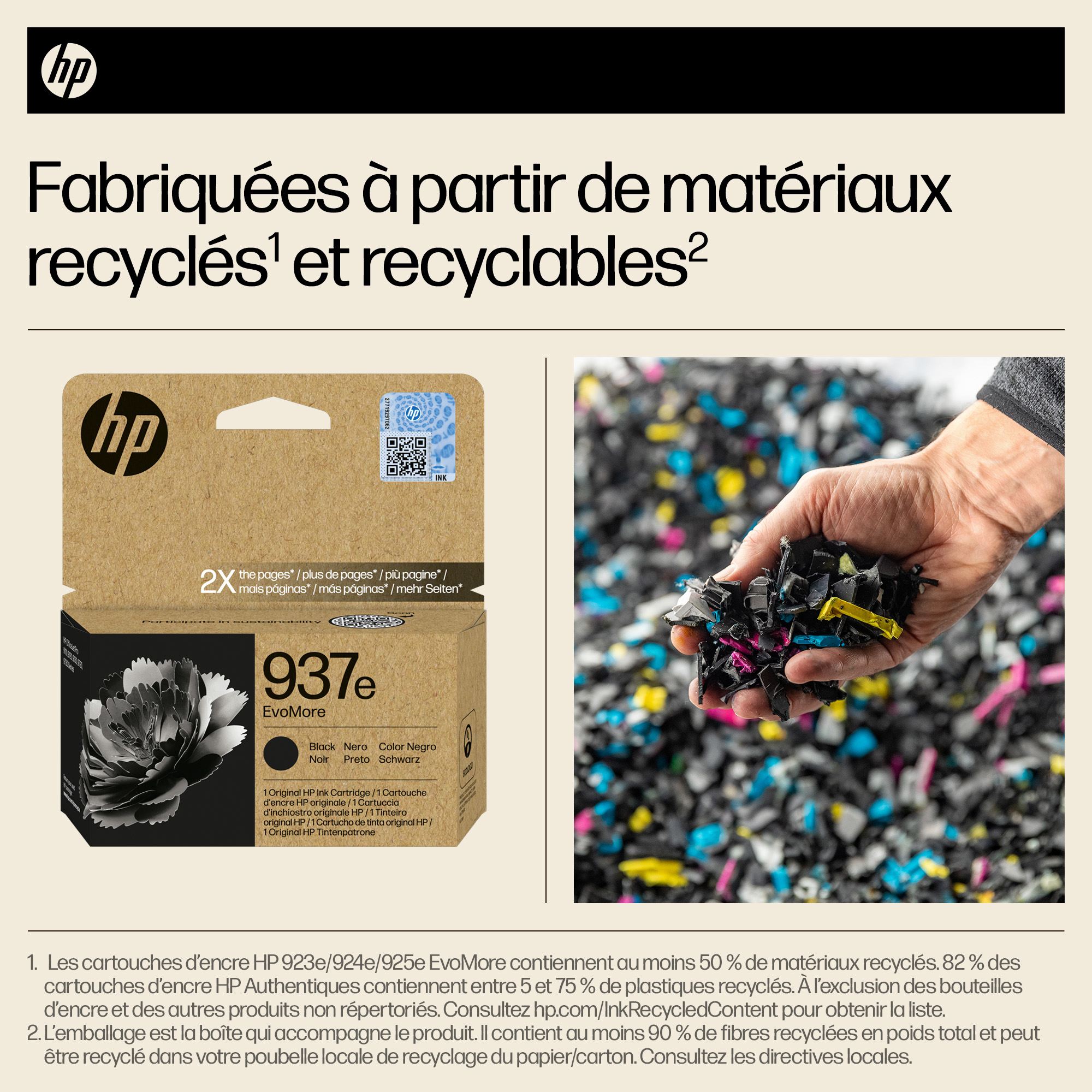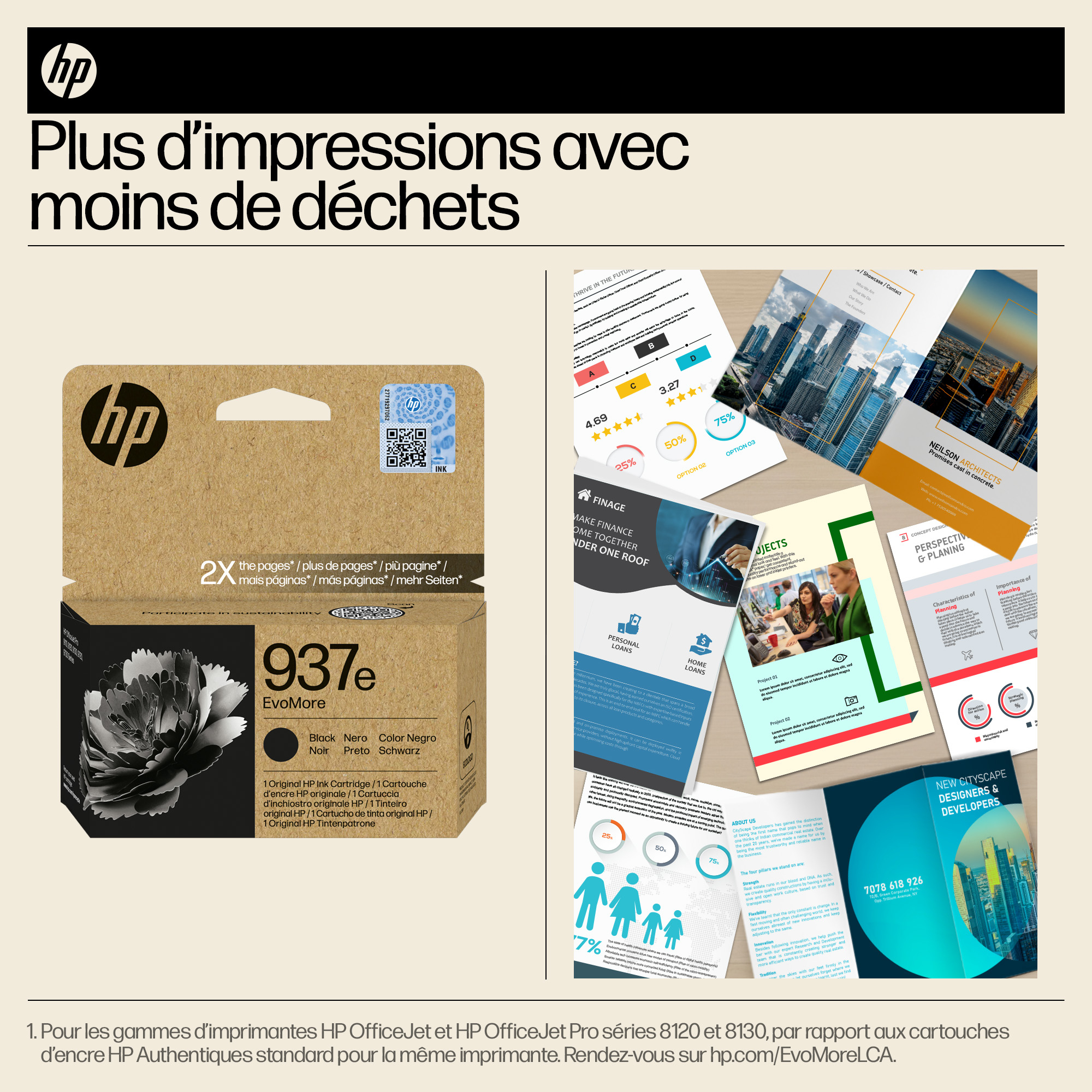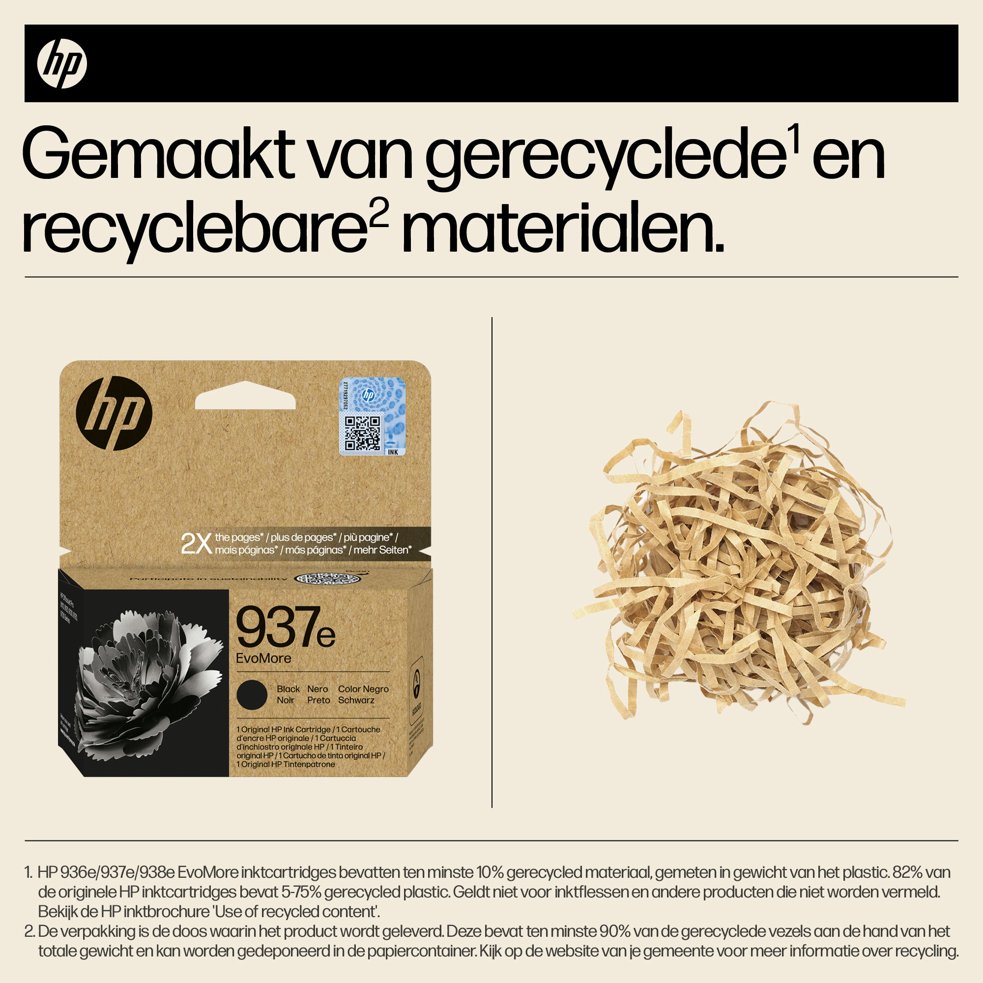 HP 937e EvoMore originele zwarte inktcartridge, Hoog (XL) rendement, Zwart, 1 stuk(s), 2500 pagina's, Enkele verpakking