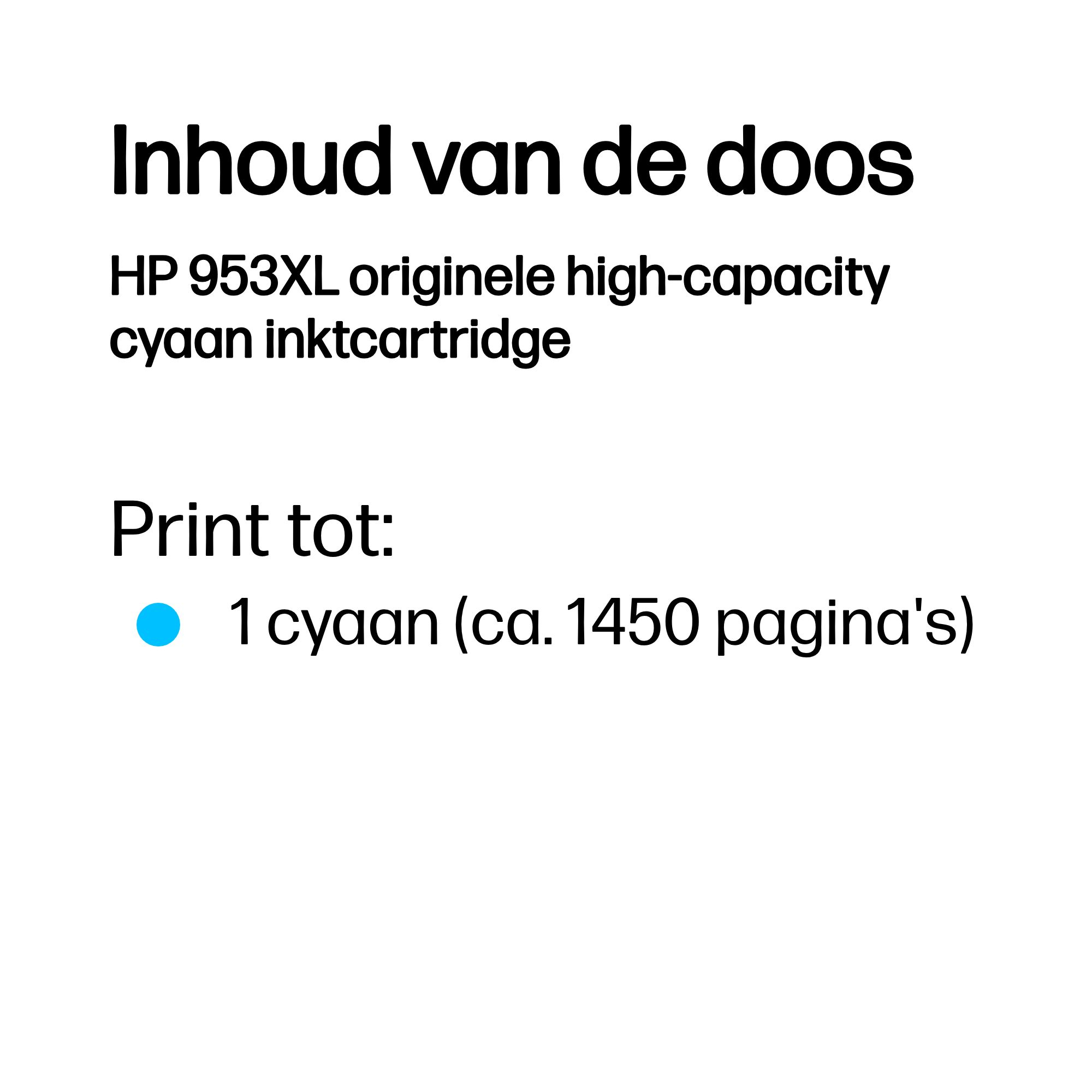 HP 953XL originele high-capacity cyaan inktcartridge, Cyaan, 1 stuk(s), 1450 pagina's