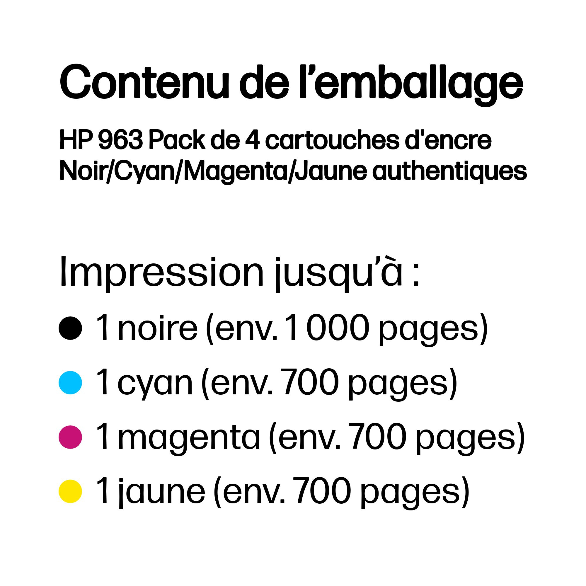 HP 963 4-pack originele inktcartridges zwart/cyaan/magenta/geel, Zwart, Cyaan, Magenta, Geel, 5 stuk(s), 1000 pagina's, 700 pagina's