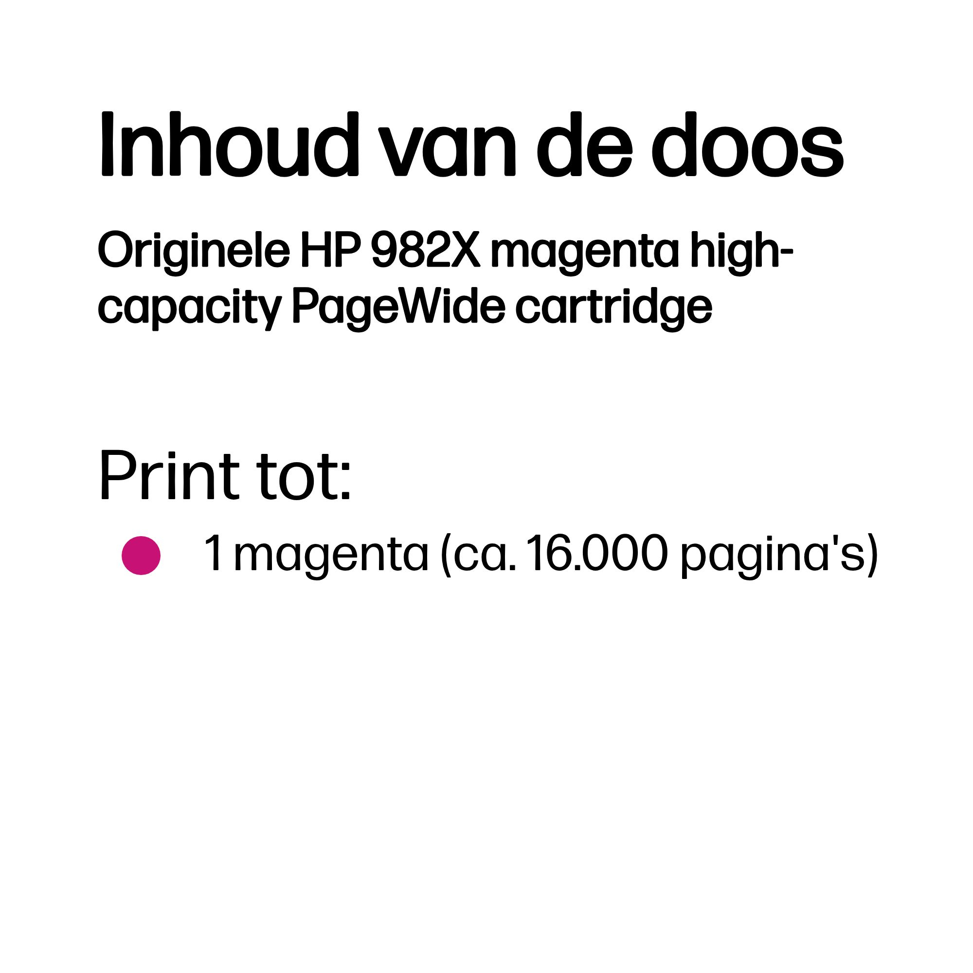 HP Originele 982X magenta high-capacity PageWide cartridge, Magenta, 1 stuk(s), 16000 pagina's