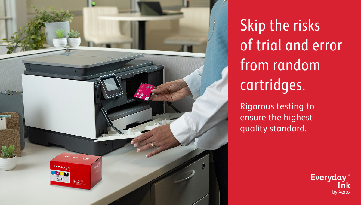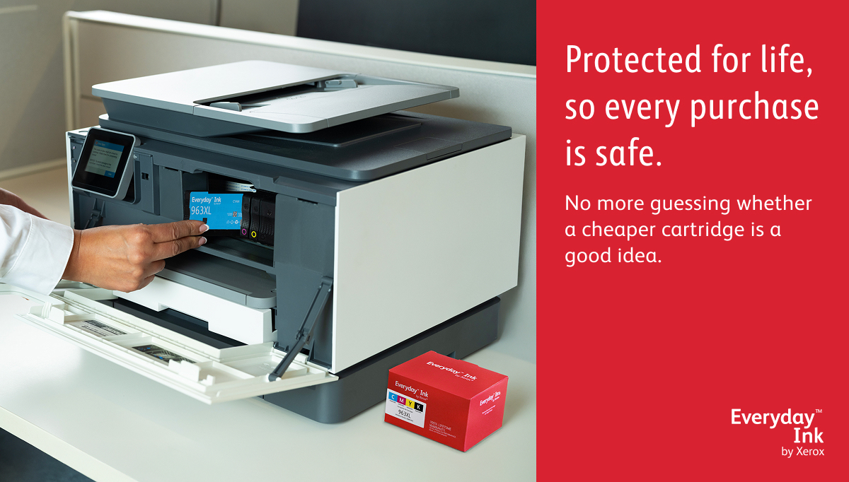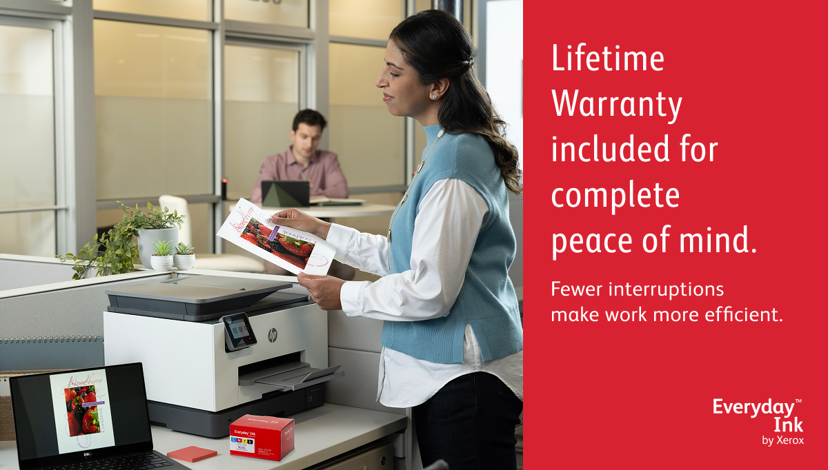 Met Everyday Ink van Xerox bespaart u 50-60% ten opzichte van originele inkt en krijgt u de prestaties, kwaliteit en betrouwbaarheid die u van Xerox verwacht, met een levenslange, zorgeloze garantie.