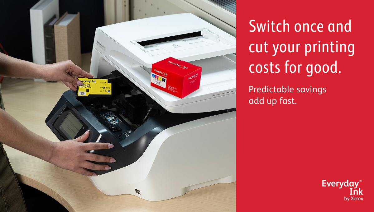 Met Everyday Ink van Xerox bespaart u 50-60% ten opzichte van originele inkt en krijgt u de prestaties, kwaliteit en betrouwbaarheid die u van Xerox verwacht, met een levenslange, zorgeloze garantie.