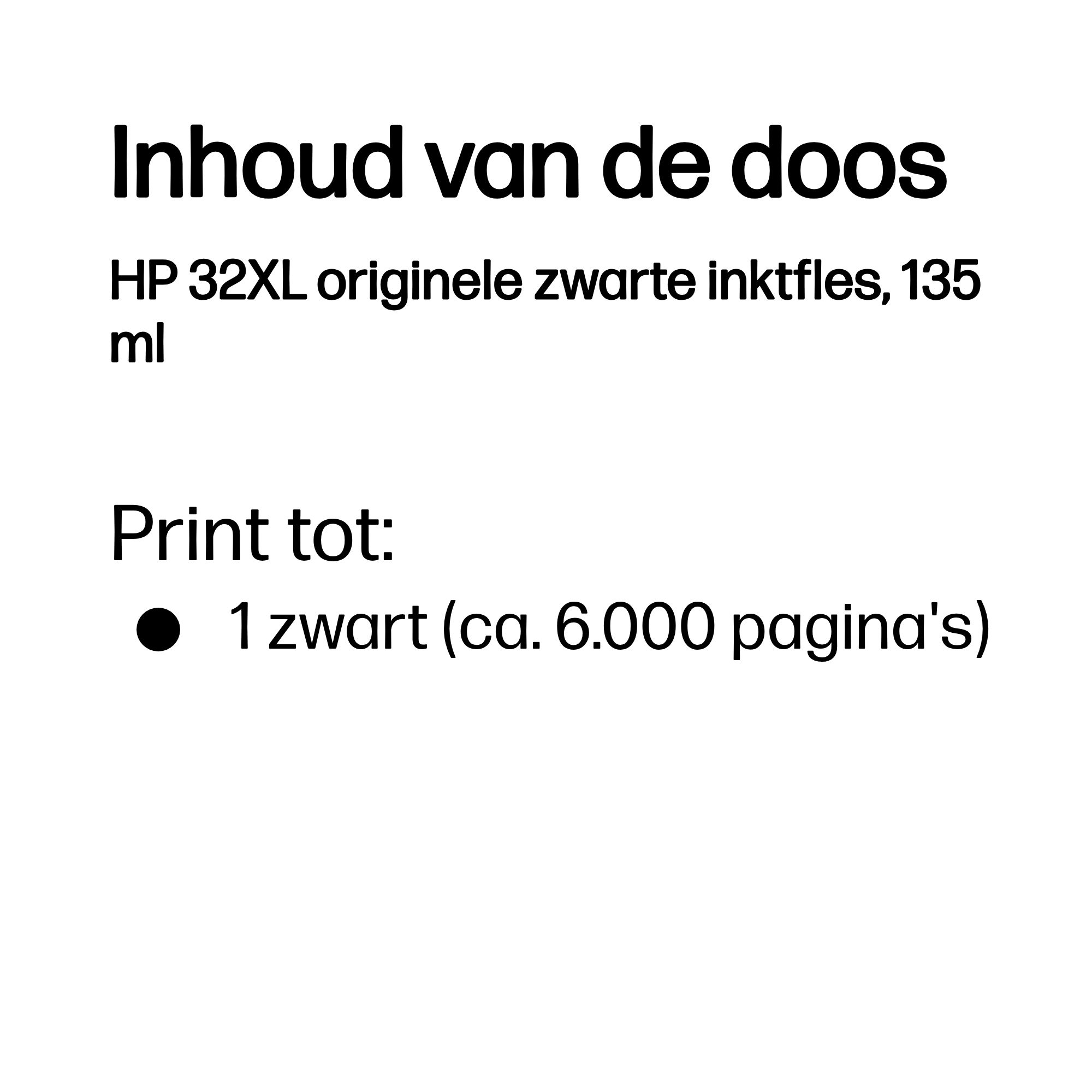 HP 32XL originele zwarte inktfles, 135 ml, Zwart, Maleisië, 15 - 35 °C, 15 - 35 °C, 20 - 80 procent, 1 stuk(s)