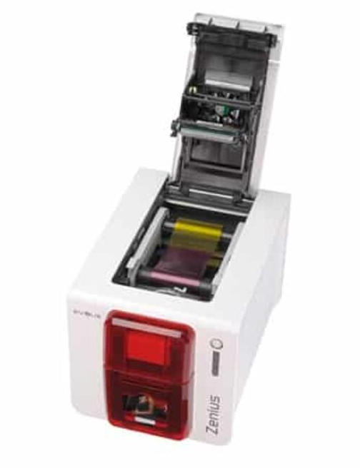 Evolis Zenius. Printtechnologie: Thermische transfer kleurstofsublimatie/hars, Maximale resolutie: 300 x 300 DPI. Kleur van het product: Wit, Totale invoercapaciteit: 50 vel