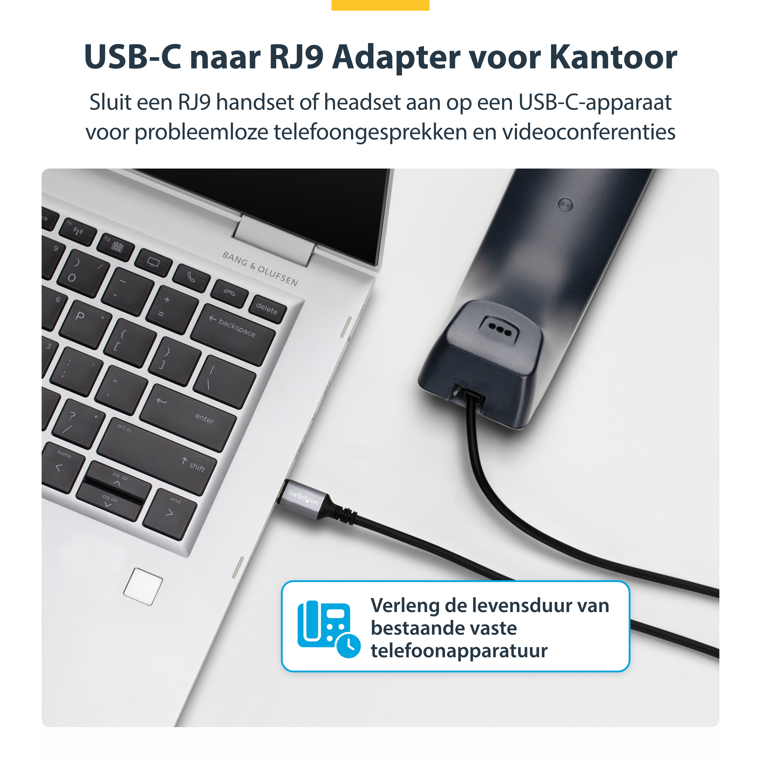 StarTech.com USB-C naar RJ9 Adapter voor Bureau Handset of Bedrade/Draadloze Koptelefoon, Gebruik bestaande telefoonapparatuur, 1,8m, Voor Laptop/Desktop Computer/Mobiel, USB-C, RJ-9, 1,8 m, Zwart
