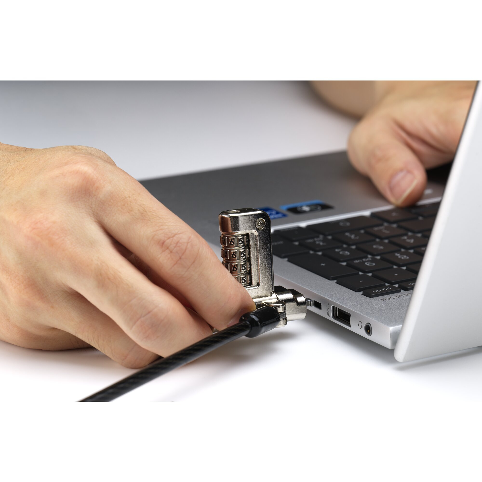 Het Universal 3-in-1 2.0 Combination Laptop Lock is een oplossing met één slothoofd voor het beveiligen van laptops met standaard, nano‑ of wedge‑beveiligingsuitsparingen. Het biedt universele compatibiliteit voor meerdere merken en generaties zonder dat u verschillende slothoofden hoeft te gebruiken. Het slot is voorzien van een resetbare 4‑cijferige combinatie, het eigen cleat‑vergrendelmechanisme, een sterke koolstofstalen kabel en een 10,000° draaibaar slothoofd voor eenvoudige bevestiging zonder poorten te blokkeren. Gecontroleerd en getest op het weerstaan en ontmoedigen van diefstal en geleverd met 5 jaar beperkte garantie: dit slot beidt duurzame beveiliging waar professionals wereldwijd op vertrouwen.