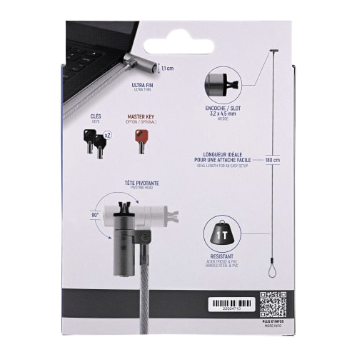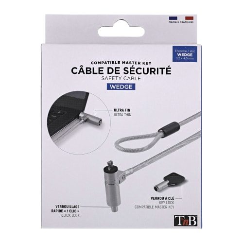 T'nB MCAVMASTERW. Kleur van het product: Wit, Beste gebruik: Laptop, PC, Slot type: Sleutel. Snoerlengte: 1,8 m, Diameter van de kabel: 5 mm, Gewicht: 116 g. Aantal per verpakking: 1 stuk(s), Breedte verpakking: 125 mm, Diepte verpakking: 25 mm