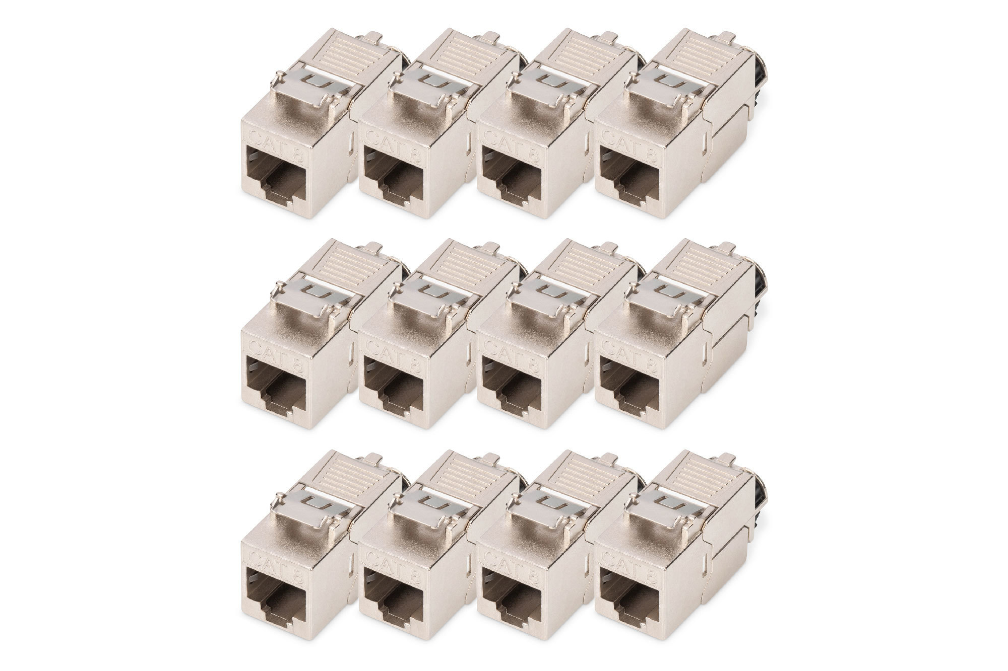 Digitus DN-93816-12. Constructietype: Plat, Kleur van het product: Zilver, Aansluiting 1: RJ-45. Aantal per verpakking: 12 stuk(s)