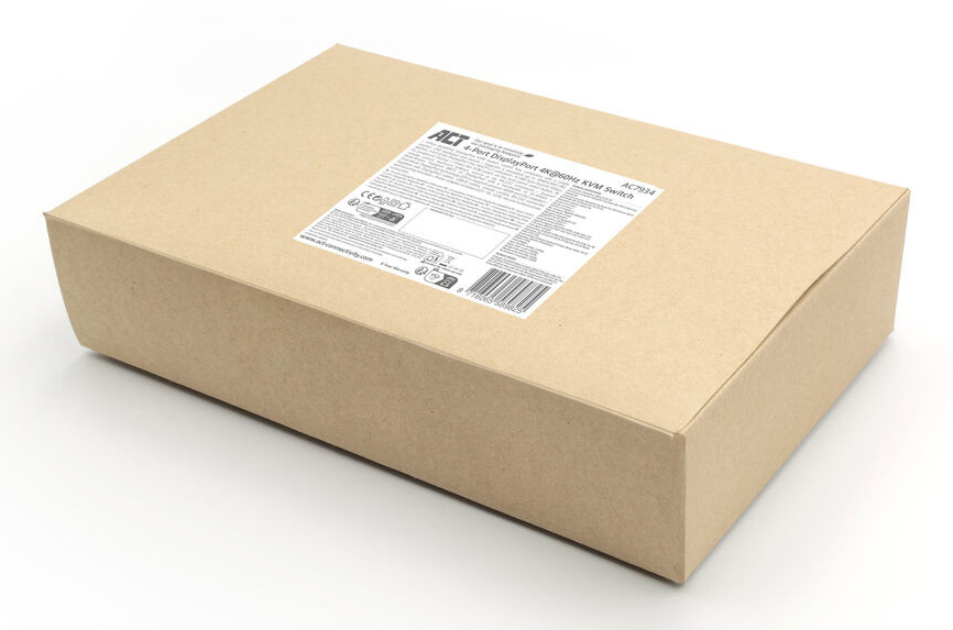 De AC7934 4-poorts DisplayPort KVM switch vereenvoudigt je werkplek door 4 computers te bedienen met één monitor, één toetsenbord en één muis. De DisplayPort-output ondersteunt een monitor met een resolutie tot 4K@60Hz. Schakel tussen de aangesloten computers met de selectieknop op de KVM-switch zelf, de afstandsbediening, toetsenbord sneltoetsen, muis of RS-232 commando’s. De AC7934 heeft een stevige metalen behuizing en wordt geleverd met alle benodigde kabels.