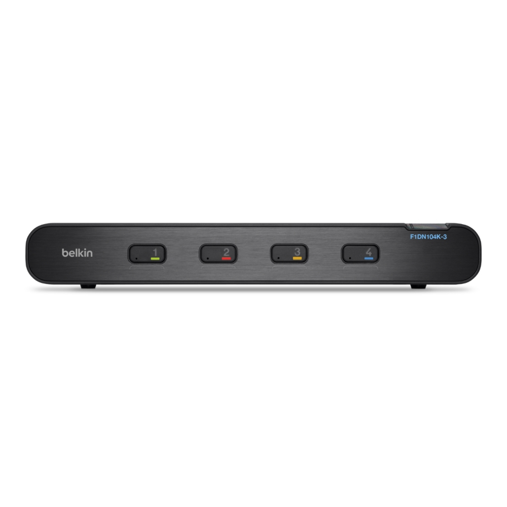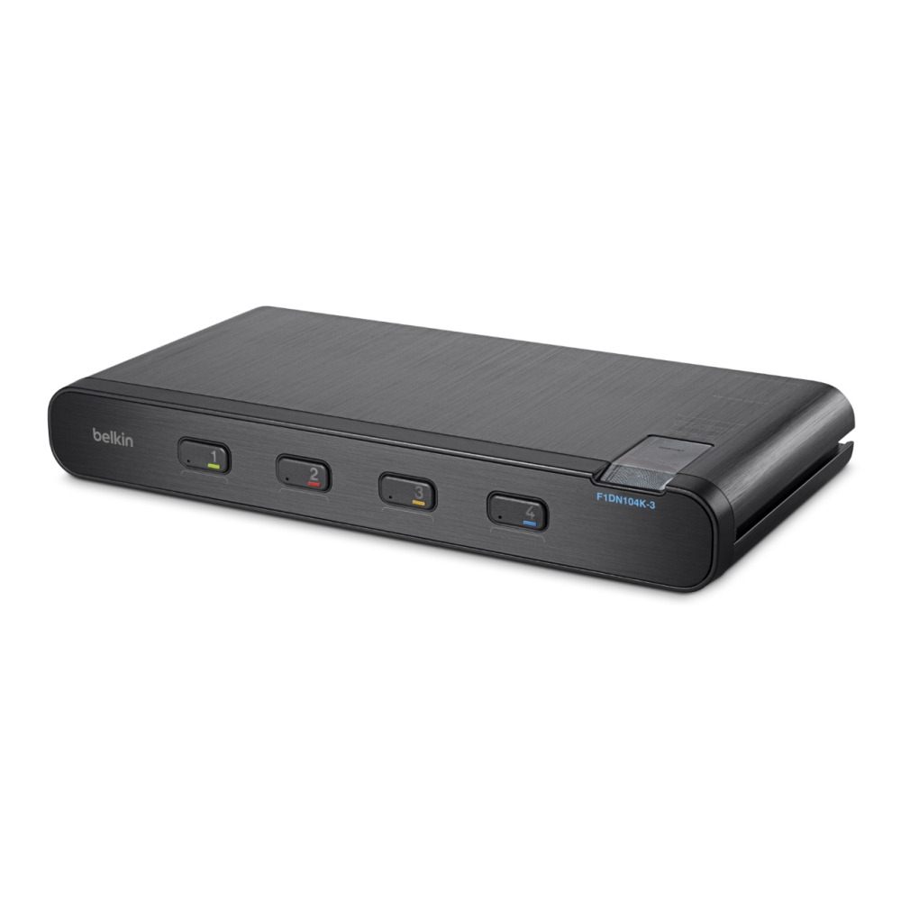 Belkin F1DN104K-3EA. Aansluiting toetsenbord: USB, Aansluiting muis: USB. Kleur van het product: Zwart. Ingangsspanning: 100 - 240, 12 V, Stroom: 1.5 A. Certificaten van naleving: RoHS. Breedte: 317,5 mm, Diepte: 162,6 mm, Hoogte: 48,3 mm