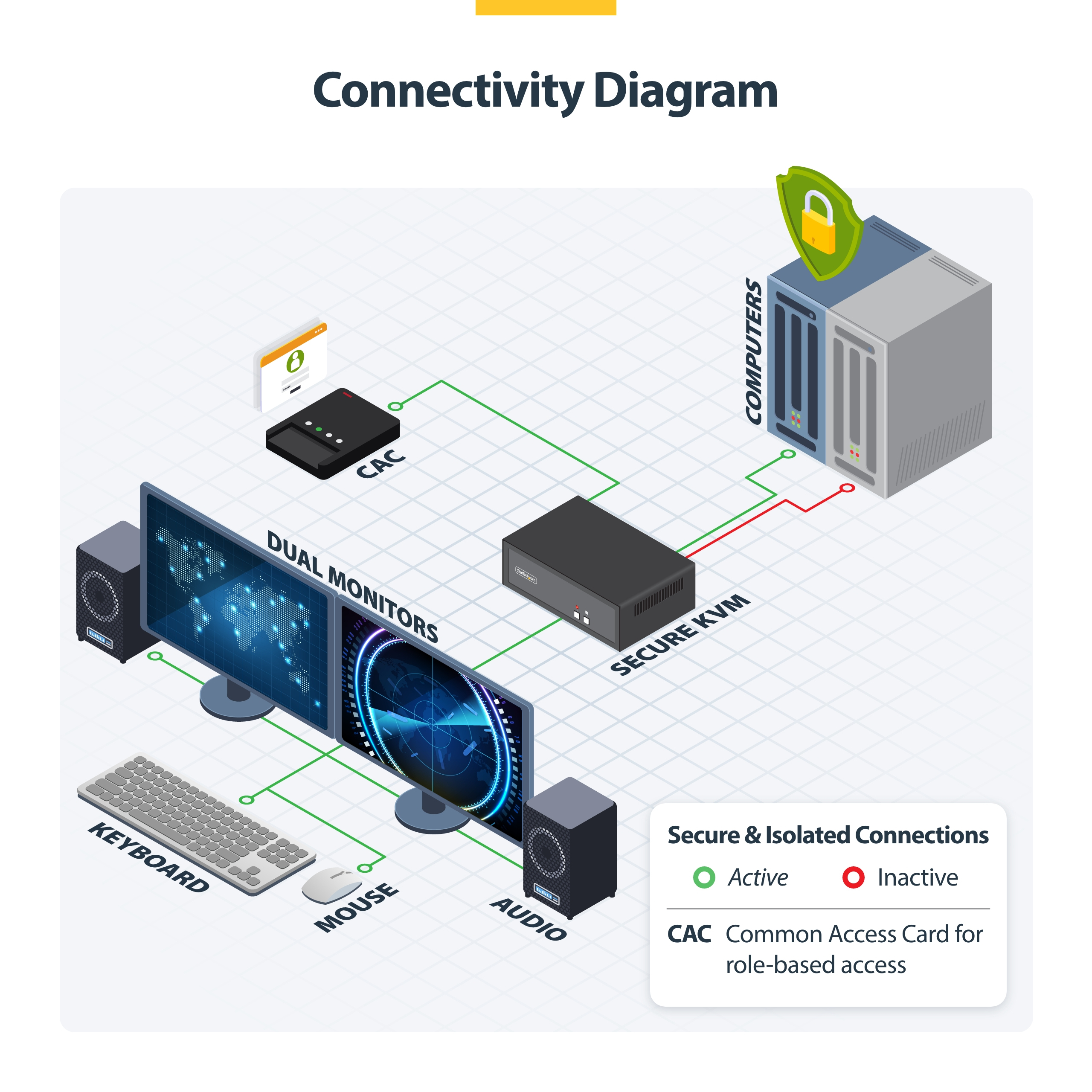 Bedien meerdere beveiligde systemen vanuit één workstation met deze NIAP gecertificeerde dual-monitor KVM switch, die met een ongeëvenaarde beveiliging en enterprise-grade prestaties een perfecte controle biedt over twee computers met twee 4K 60Hz schermen.