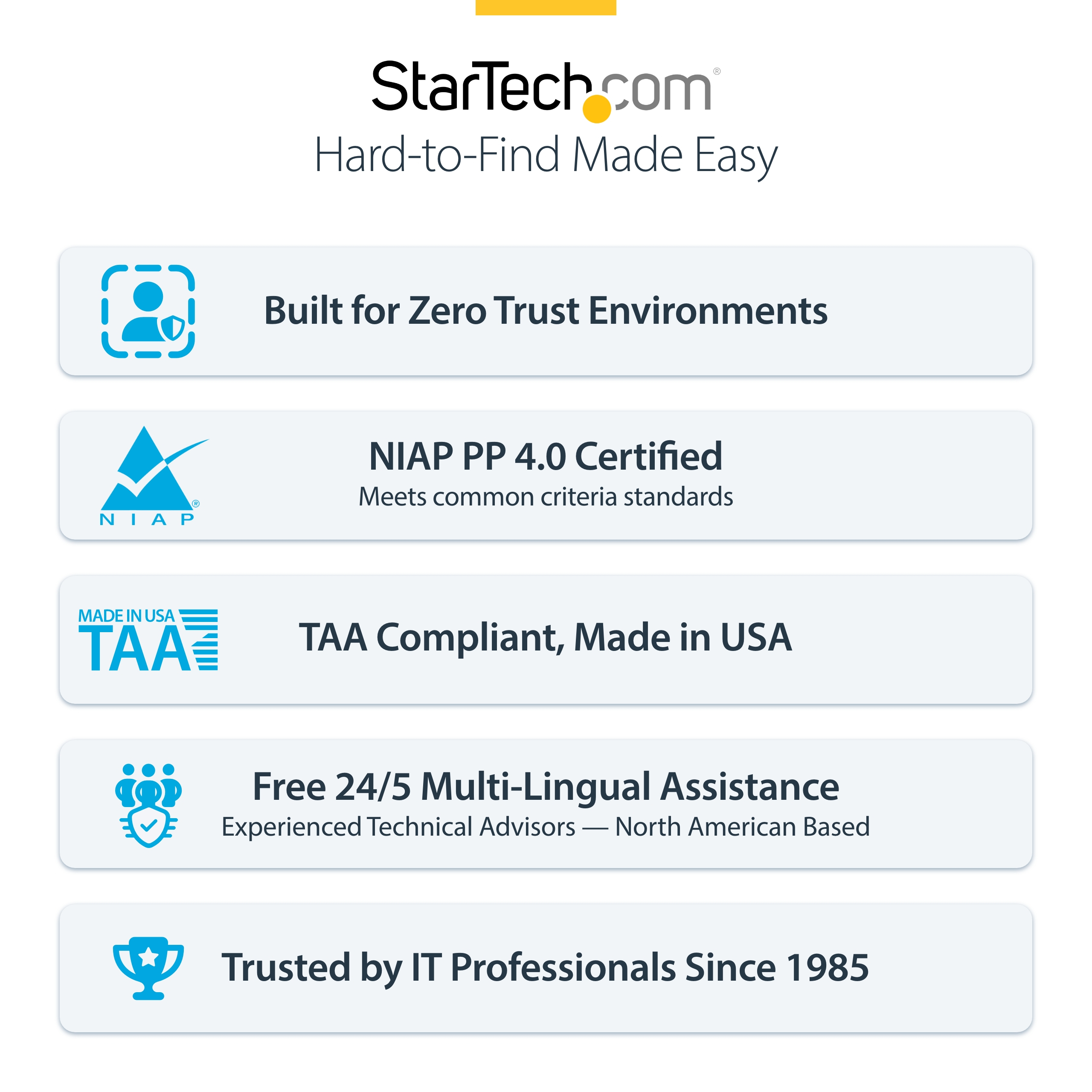 StarTech.com Secure 2-Port Dual-Monitor KVM Switch, HDMI of DisplayPort, 4K 60Hz, NIAP 4.0, CAC Poort, Made in USA