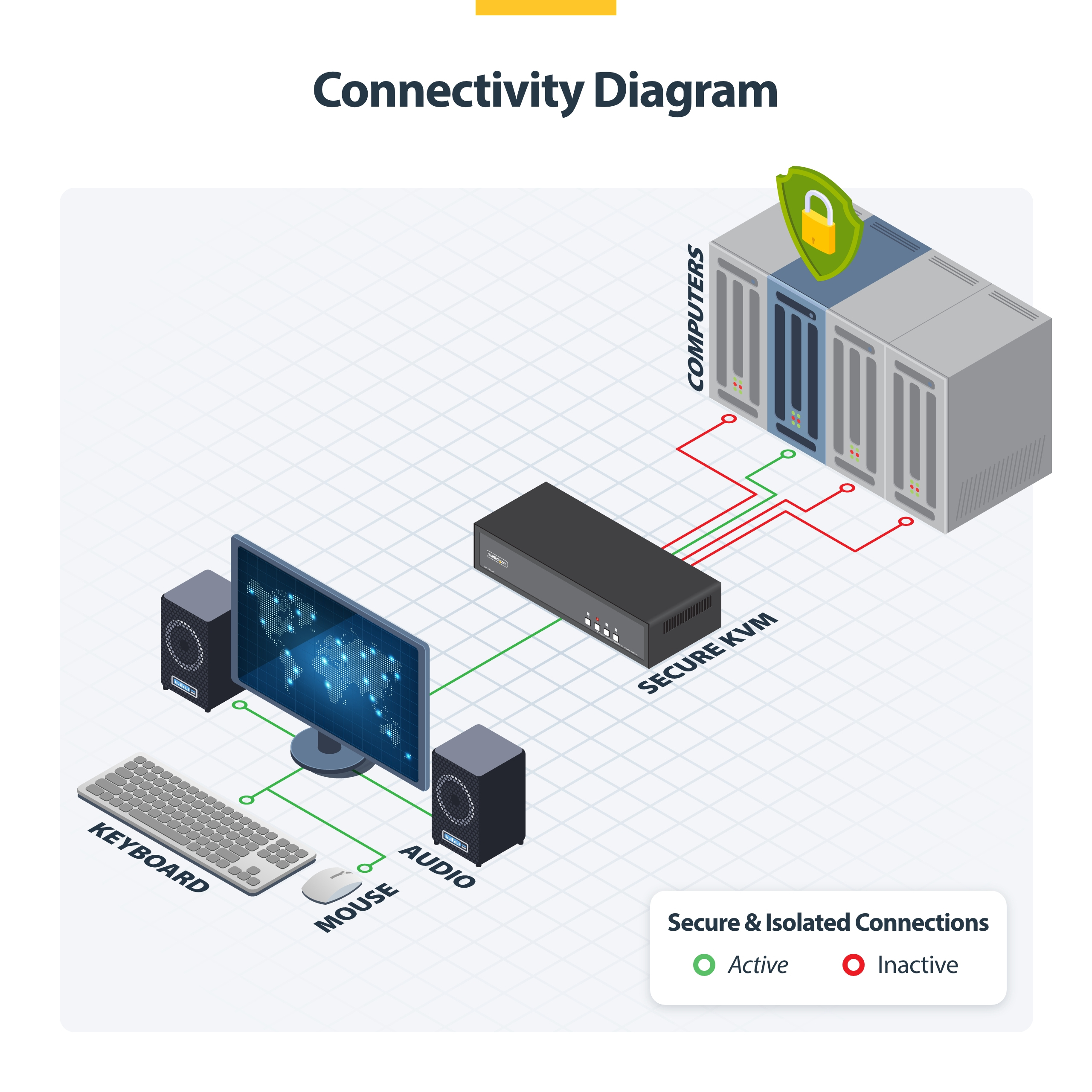 Onze secure KVM switches zijn speciaal ontworpen voor IT-professionals. Ze worden geproduceerd in de VS, zijn NIAP-gecertificeerd, grondig getest in onze Innovation Lab en worden wereldwijd vertrouwd door security teams van overheden, defensie en bedrijven. Ze zijn ontworpen voor omgevingen waarin gevoelige of vertrouwelijke gegevens worden verwerkt en combineren hoogwaardige beveiliging met de betrouwbare prestaties die vereist zijn voor bedrijfskritische operaties.