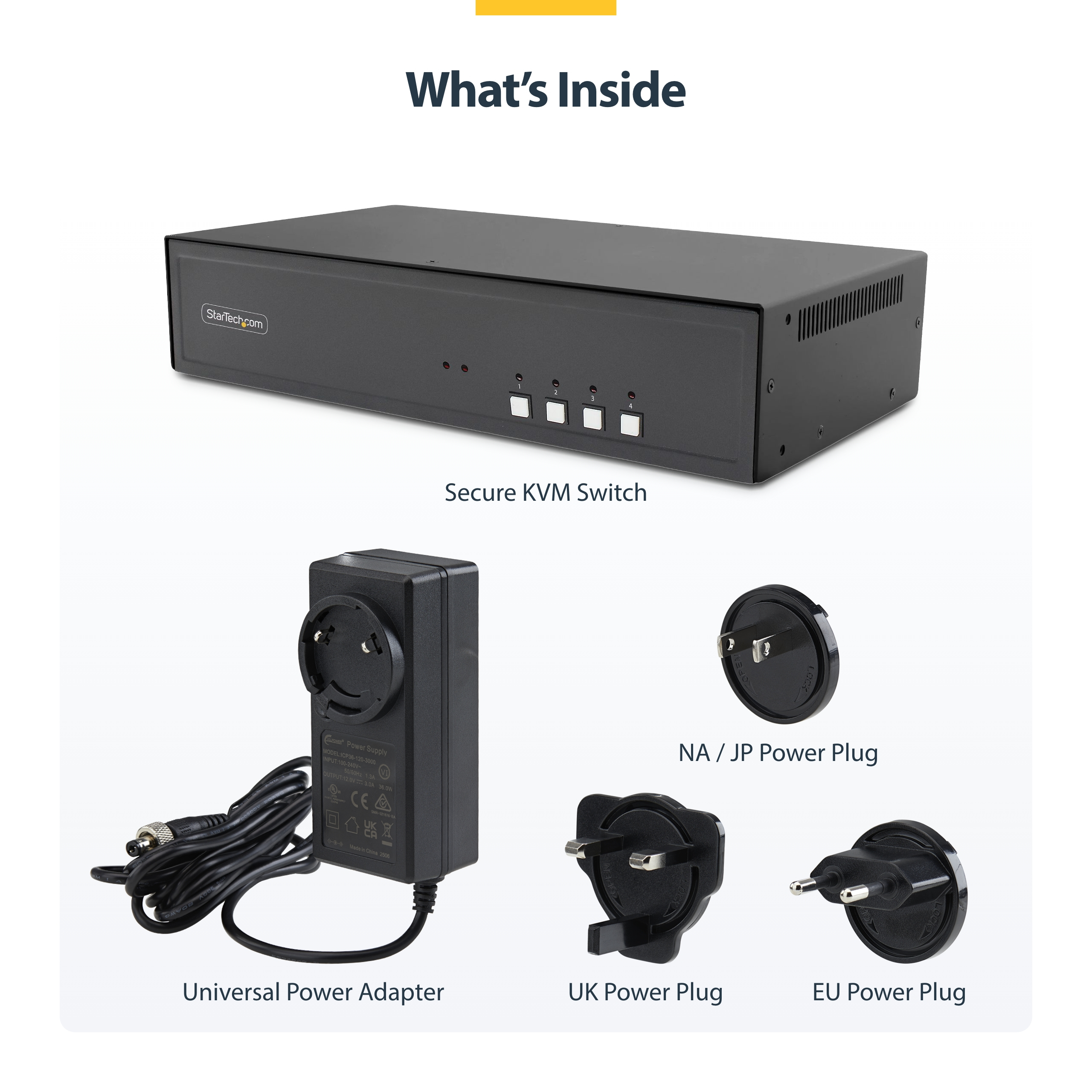 StarTech.com Secure 4-Port Dual-Monitor KVM Switch, DisplayPort, 4K 30Hz, NIAP 4.0 Gecertificeerde Desktop KVM, Metalen Behuizing, CAC Poort, Made in USA, 89 mm, 16,2 mm, 216 mm, 257 mm, 551 mm, 436 mm