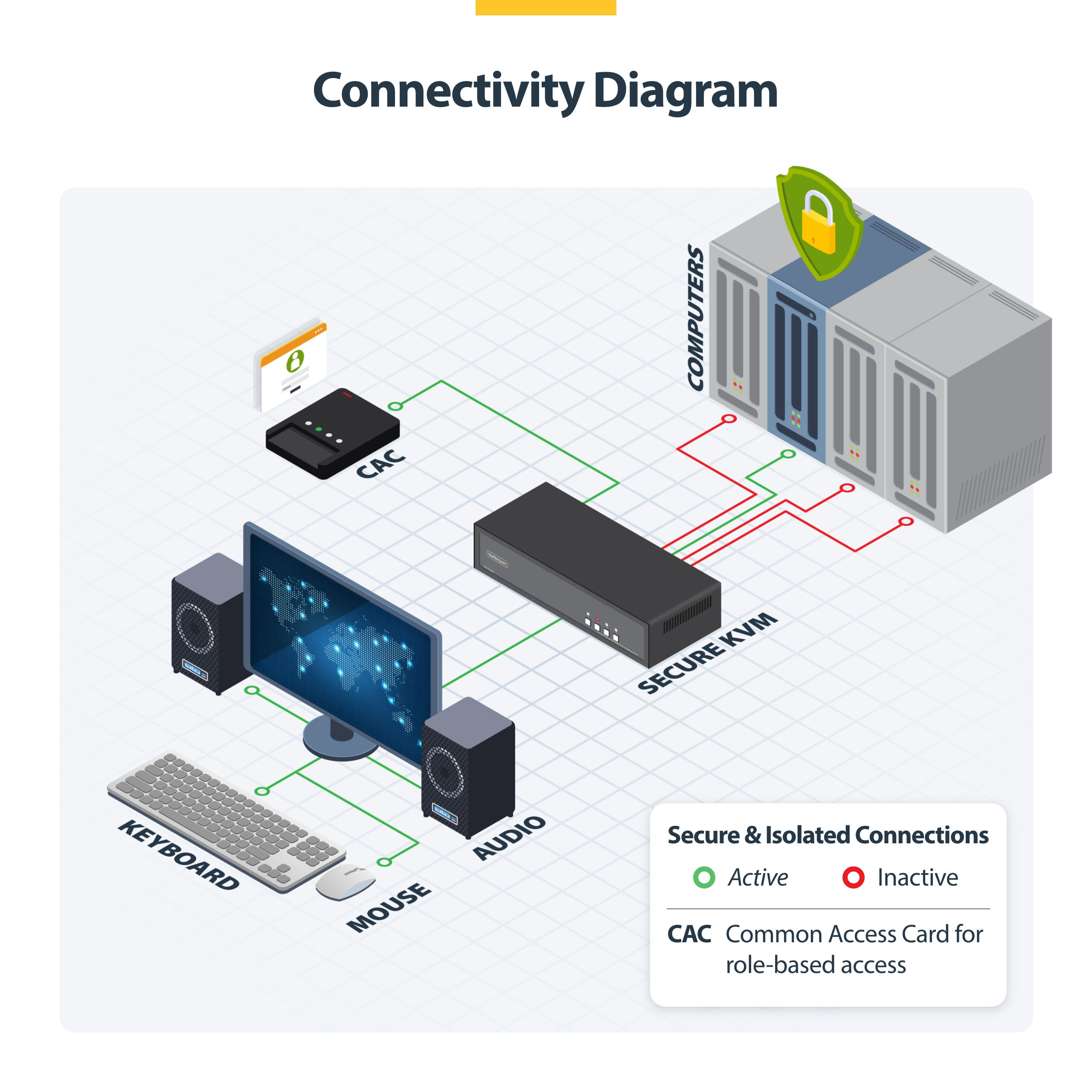 Onze secure KVM switches zijn speciaal ontworpen voor IT-professionals. Ze worden geproduceerd in de VS, zijn NIAP-gecertificeerd, grondig getest in onze Innovation Lab en worden wereldwijd vertrouwd door security teams van overheden, defensie en bedrijven. Ze zijn ontworpen voor omgevingen waarin gevoelige of vertrouwelijke gegevens worden verwerkt en combineren hoogwaardige beveiliging met de betrouwbare prestaties die vereist zijn voor bedrijfskritische operaties.