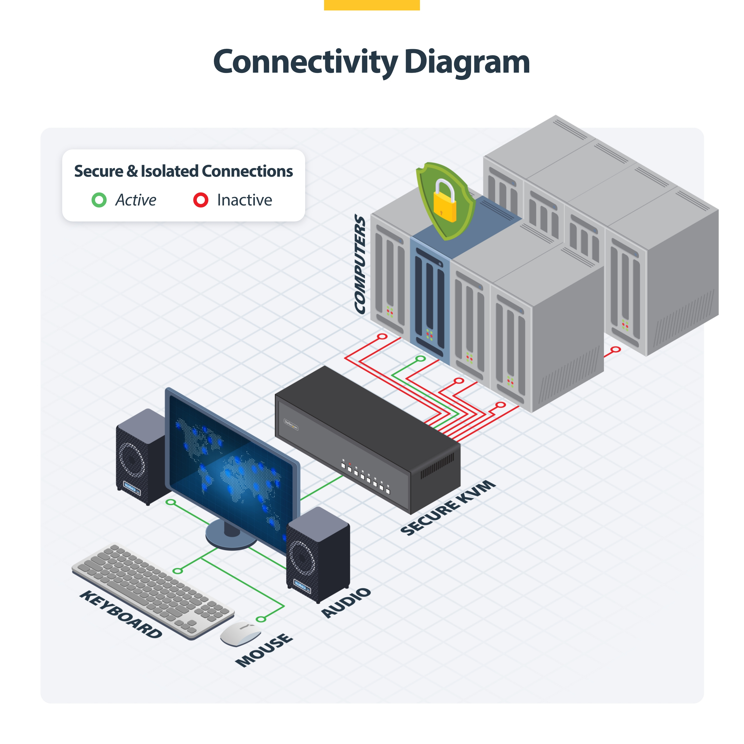 Bedien meerdere beveiligde systemen vanuit één workstation met deze NIAP gecertificeerde KVM switch, die met een ongeëvenaarde beveiliging en enterprise-grade prestaties een perfecte controle biedt over acht computers met één 4K 30Hz beeldscherm.