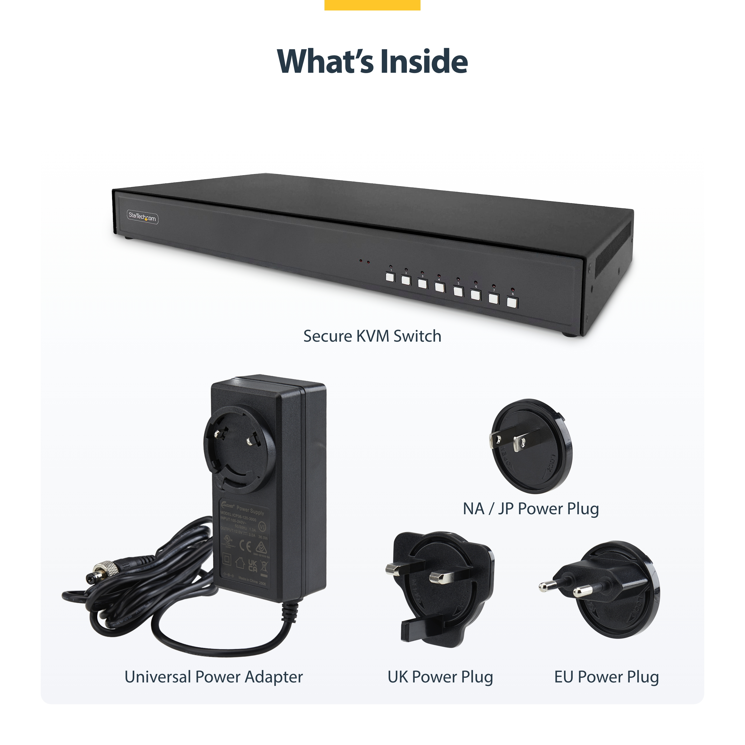 StarTech.com Secure 8-Port KVM Switch, DisplayPort, 4K 30Hz, NIAP 4.0 Gecertificeerde Desktop KVM, Metalen Behuizing, Made in USA, 3840 x 2160 Pixels, 4K Ultra HD, Zwart