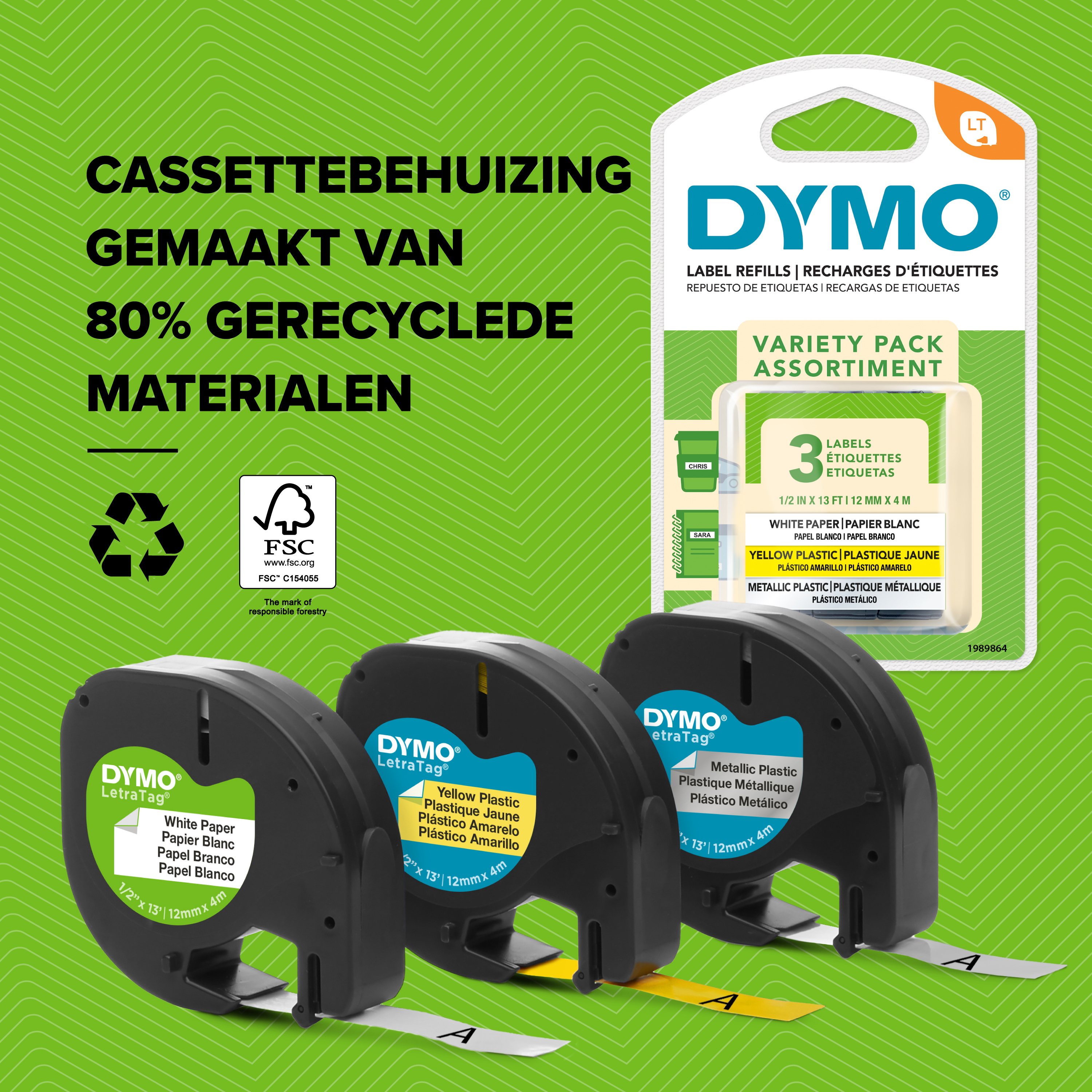 DYMO 12mm LetraTag Plastic Tape, Polyester, België, blister