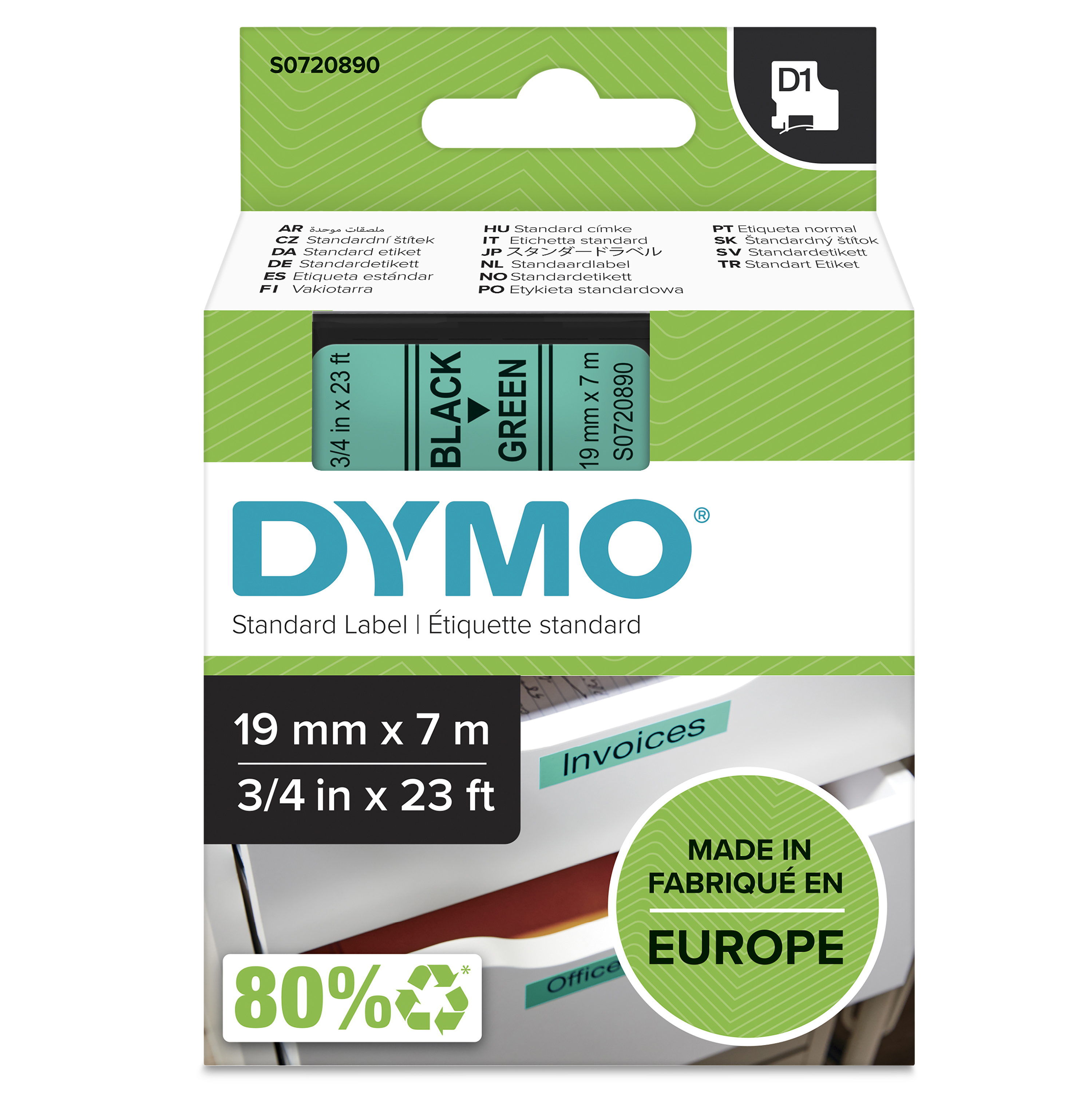 DYMO originele D1 labels | Zwarte Tekst op Groen Label | 19 mm x 7 m | zelfklevende etiketten voor de LabelManager labelprinter | gemaakt in Europa