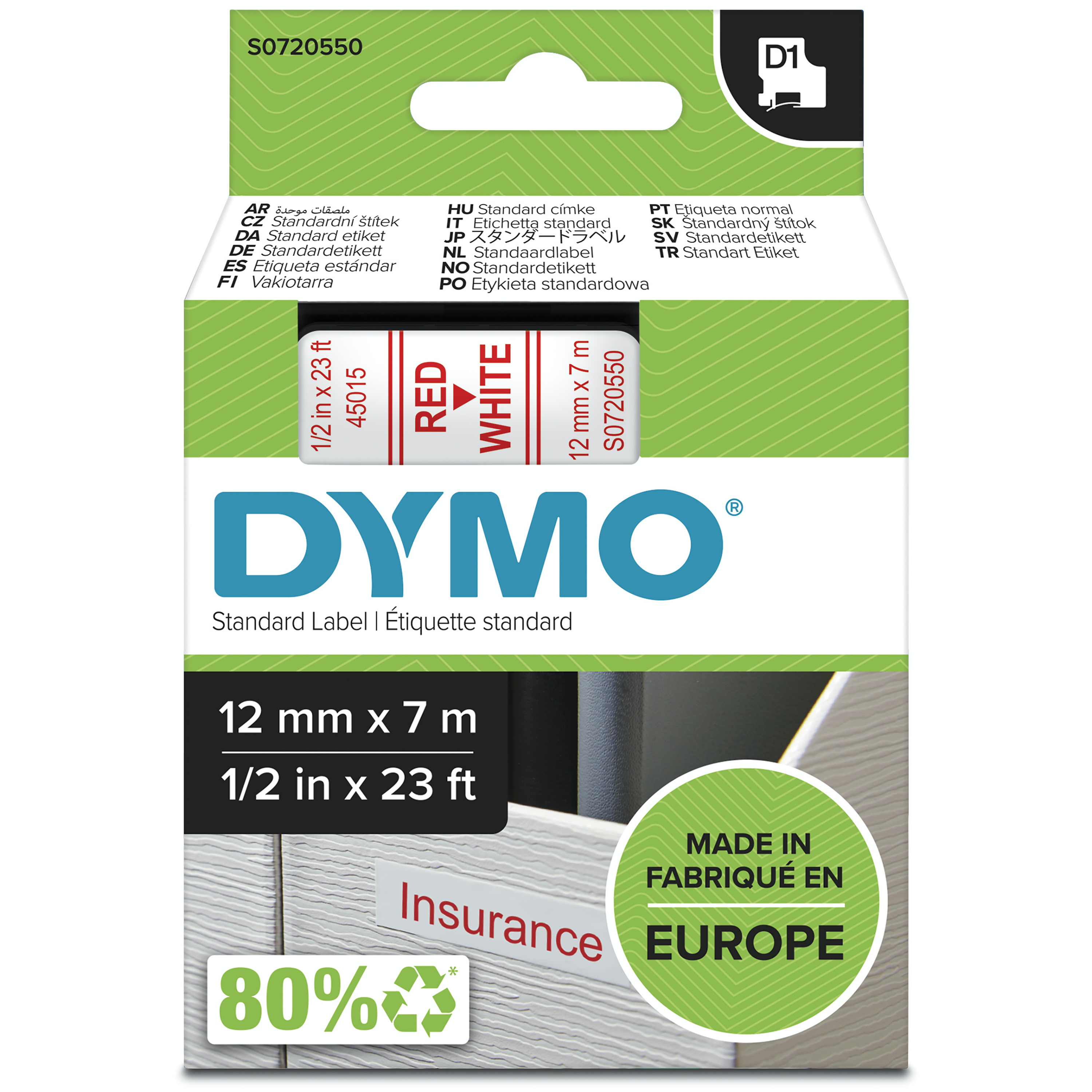 DYMO originele D1 labels | Rode Tekst op Wit Label | 12 mm x 7 m | zelfklevende etiketten voor de LabelManager labelprinter | gemaakt in Europa