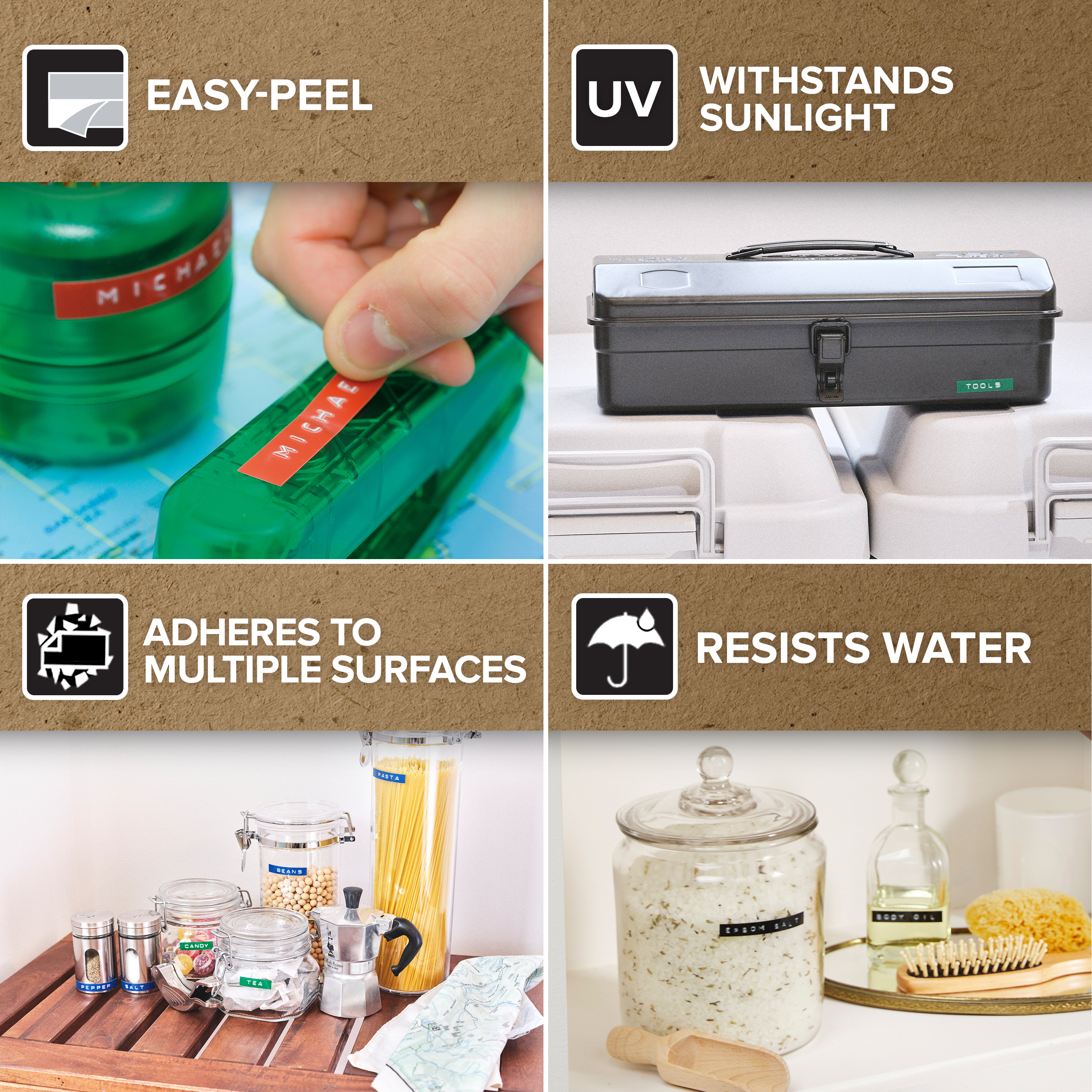 De klassieke reliëflabels van DYMO laten letters aantrekkelijk uitkomen in een driedimensionaal effect. De scherp contrasterende wit-op-zwart-afdrukken vervagen niet en kunnen worden verwijderd zonder te breken of plakkerige resten achter te laten. U kunt erop rekenen dat de plastic DYMO-reliëflabels lang meegaan. Ze hechten aan vrijwel elk glad, schoon oppervlak, zowel binnen als buiten.
